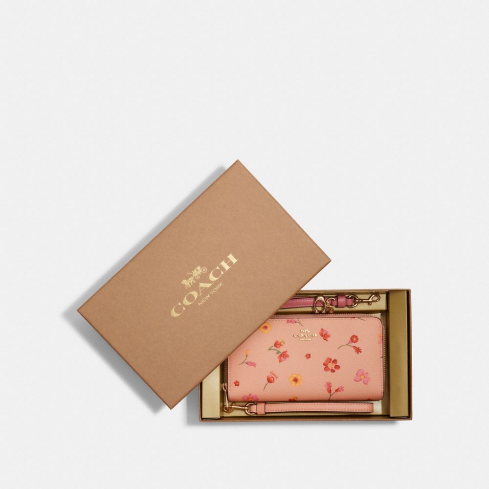 COACH FACTORY OUTLET PRICE CHART - C9714 - BOXED LONG ZIP AROUND WALLET WITH MYSTICAL FLORAL PRINT - GOLD/FADED BLUSH MULTI