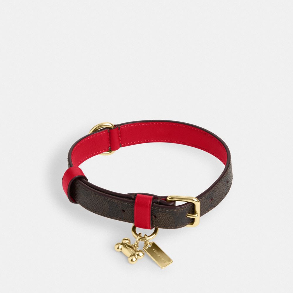 COACH FACTORY OUTLET PRICE CHART - CX157 - BOXED MEDIUM PET COLLAR IN SIGNATURE CANVAS - GOLD/WALNUT/BOLD RED
