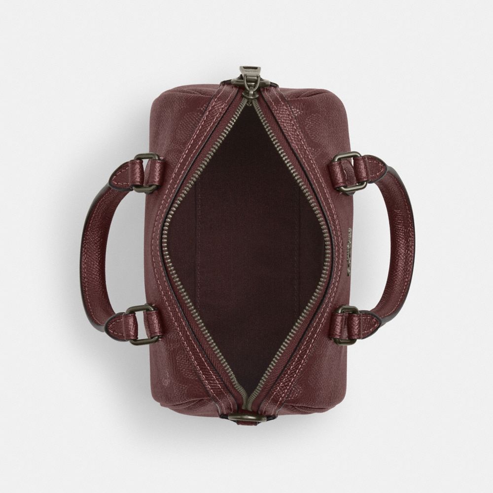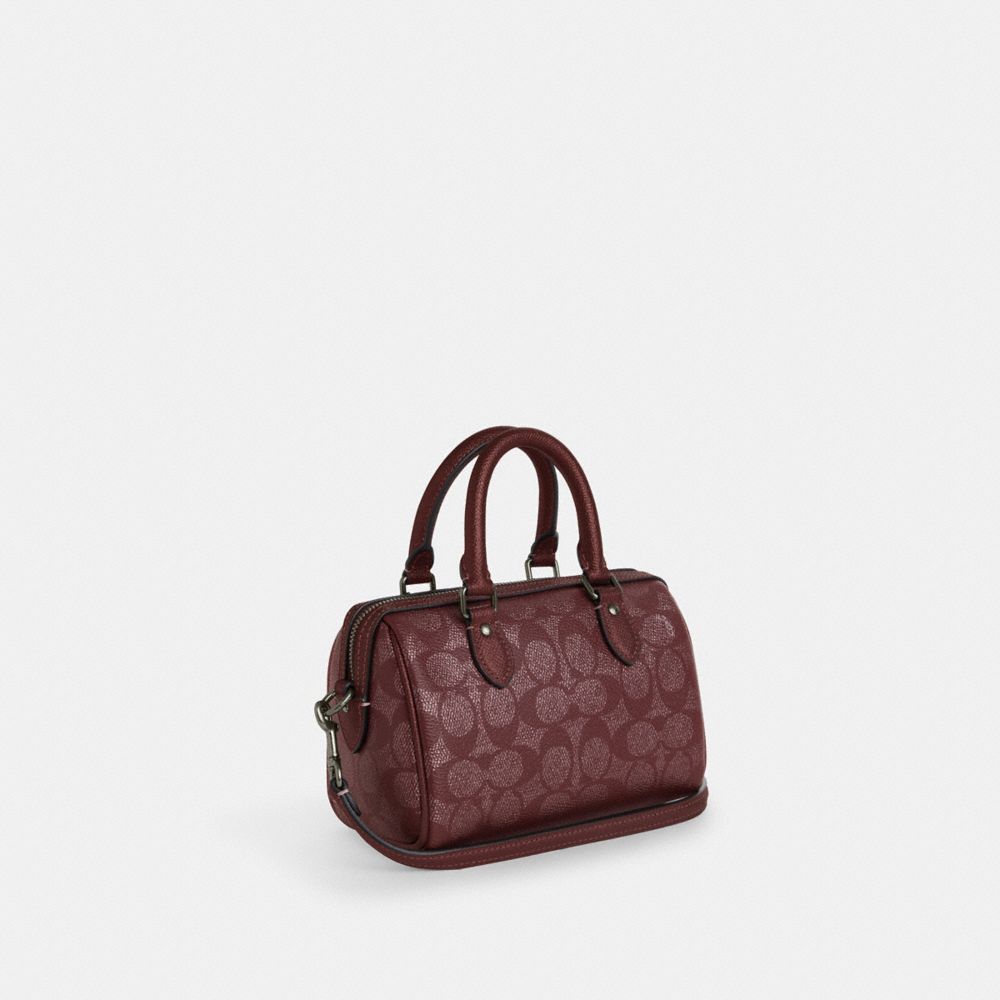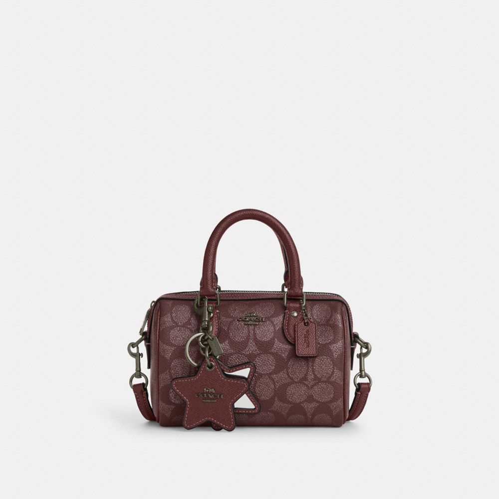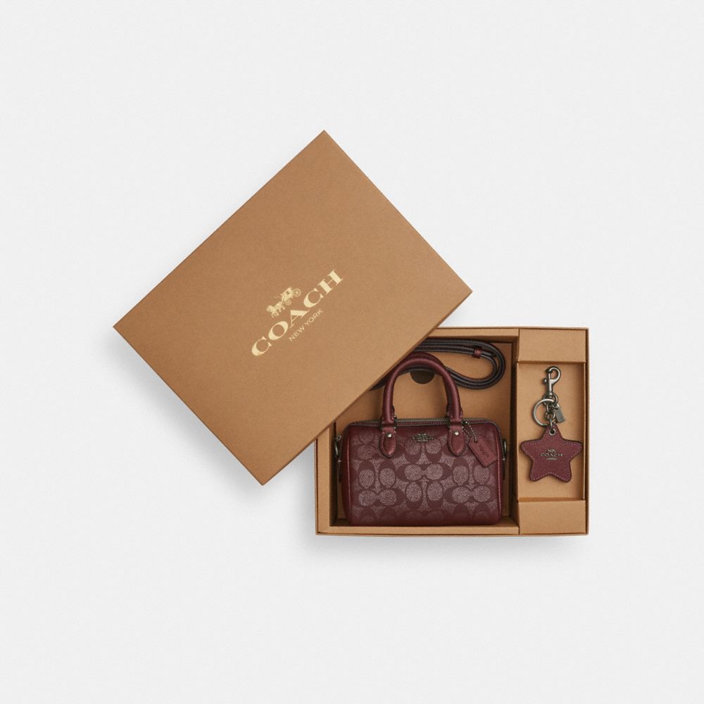 COACH FACTORY OUTLET PRICE CHART - CX186 - BOXED MINI ROWAN CROSSBODY BAG AND MIRROR BAG CHARM SET IN SIGNATURE CANVAS - GUNMETAL/WINE MULTI