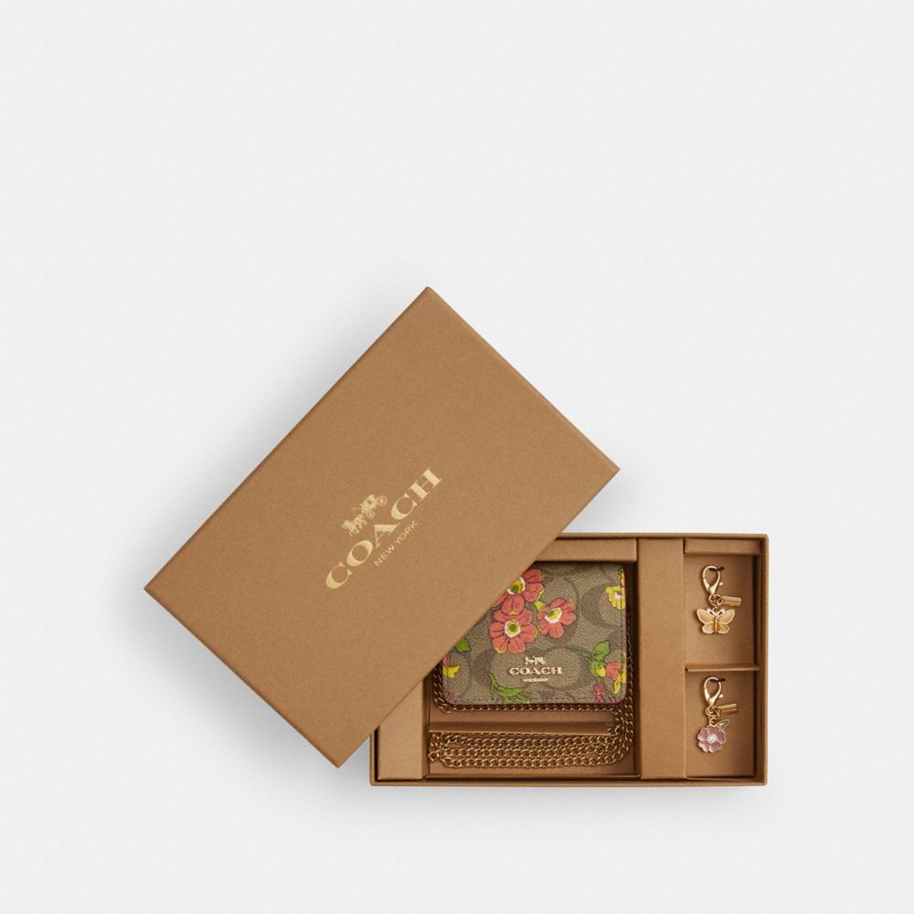 BOXED MINI WALLET ON A CHAIN IN SIGNATURE CANVAS WITH FLORAL PRINT (COACH CR949)