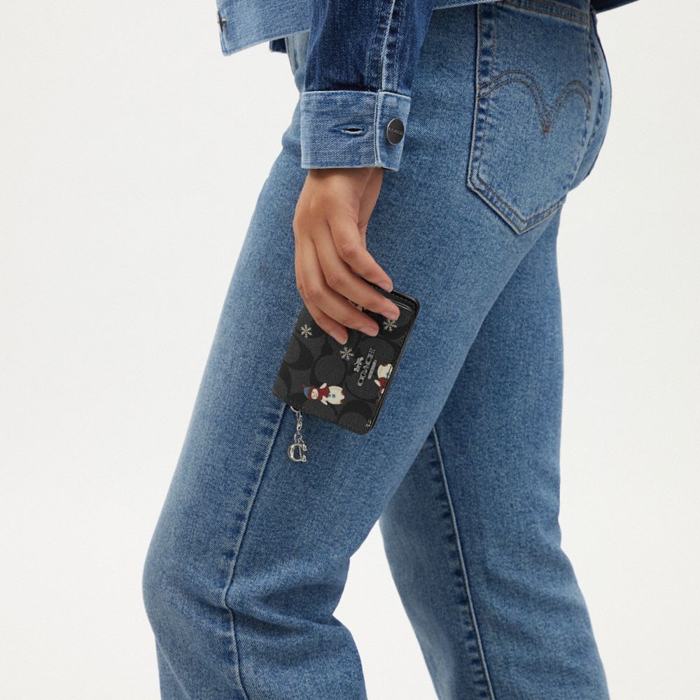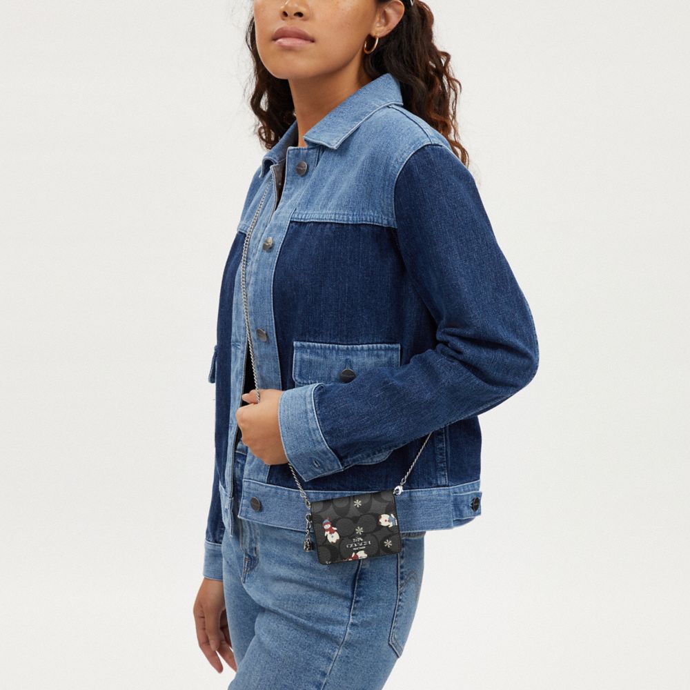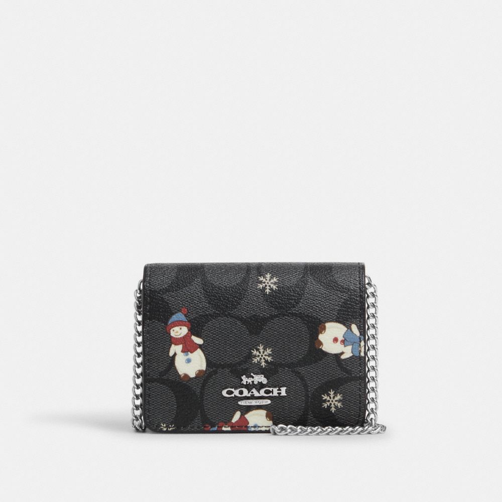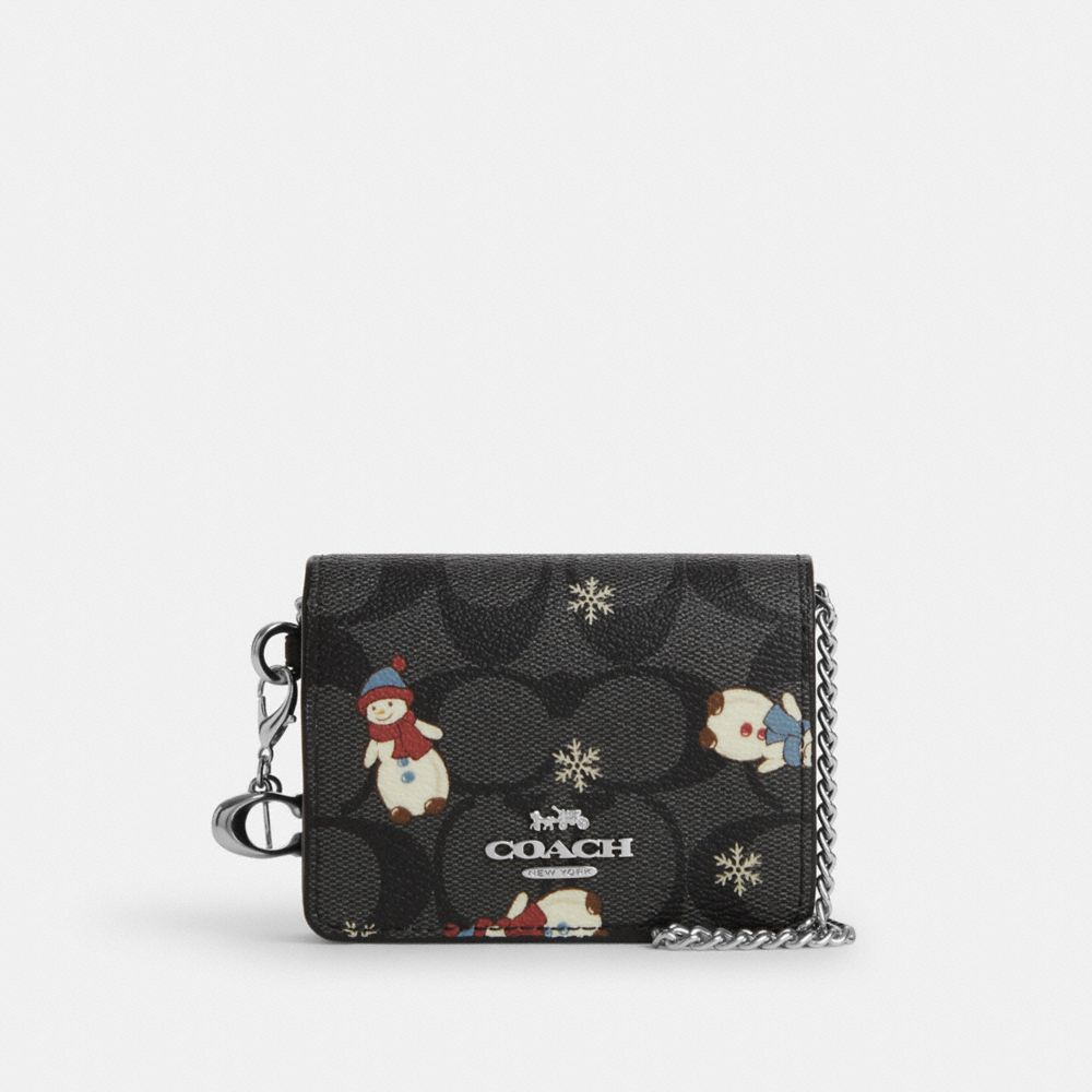 BOXED MINI WALLET ON A CHAIN IN SIGNATURE CANVAS WITH SNOWMAN PRINT (COACH CN047)