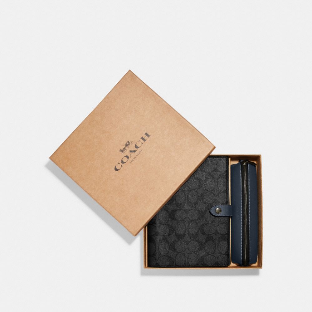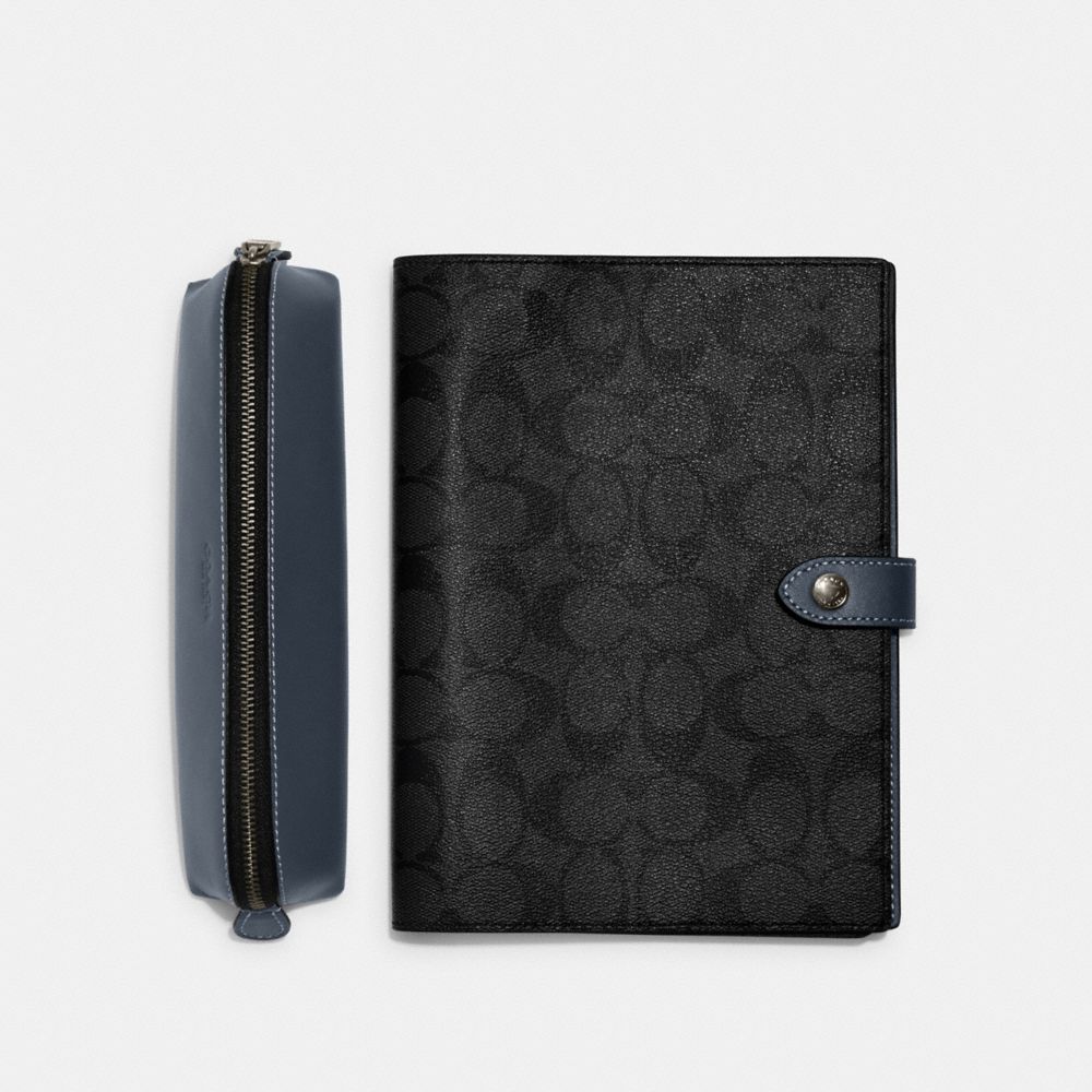 COACH FACTORY OUTLET PRICE CHART - CE908 - BOXED NOTEBOOK AND PENCIL CASE GIFT SET IN COLORBLOCK SIGNATURE CANVAS - GUNMETAL/CHARCOAL/DENIM