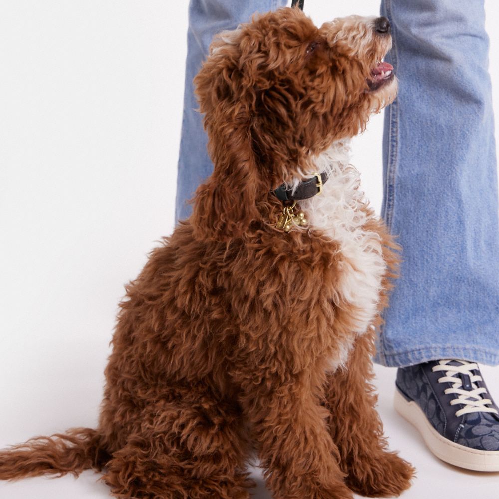 | Signature coated canvas and smooth leather | Buckle closure | 1/2" (W) | Fits dogs with neck size 9 1/2" - 11 1/2" | Packaged in a Coach gift box|Style No. CH144|
