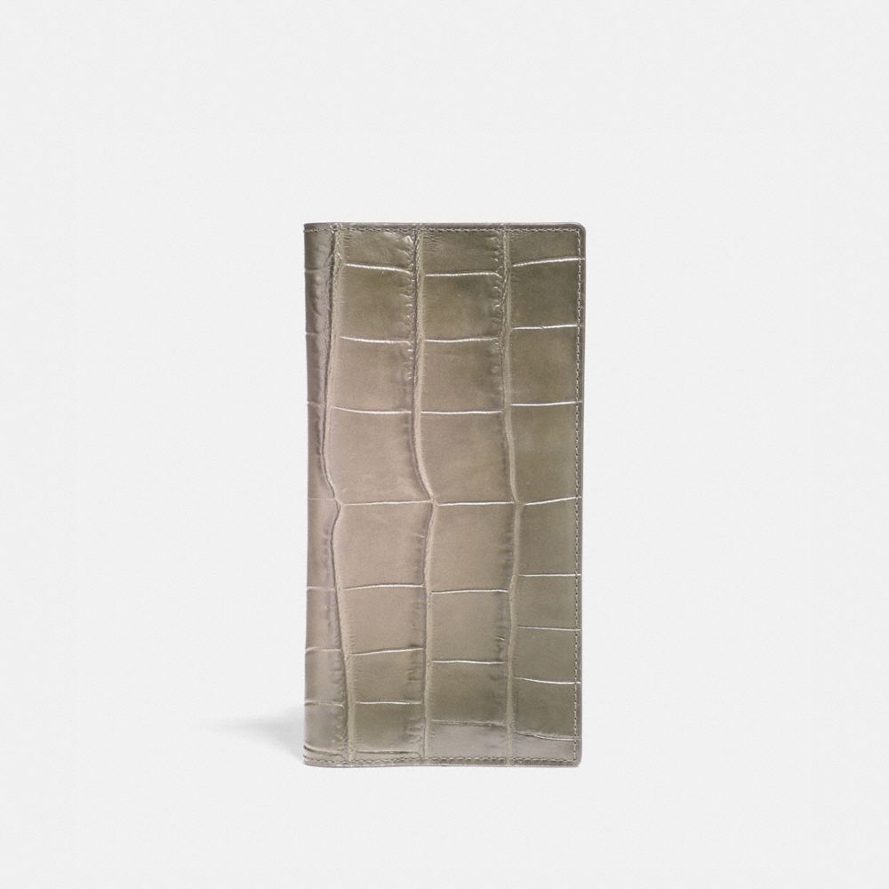 | Crocodile-embossed leather | 16 credit card slots | Full-length bill compartments | 3 3/4" (L) x 7 1/2" (H) x 3/4" (W)|Style No. 28402|