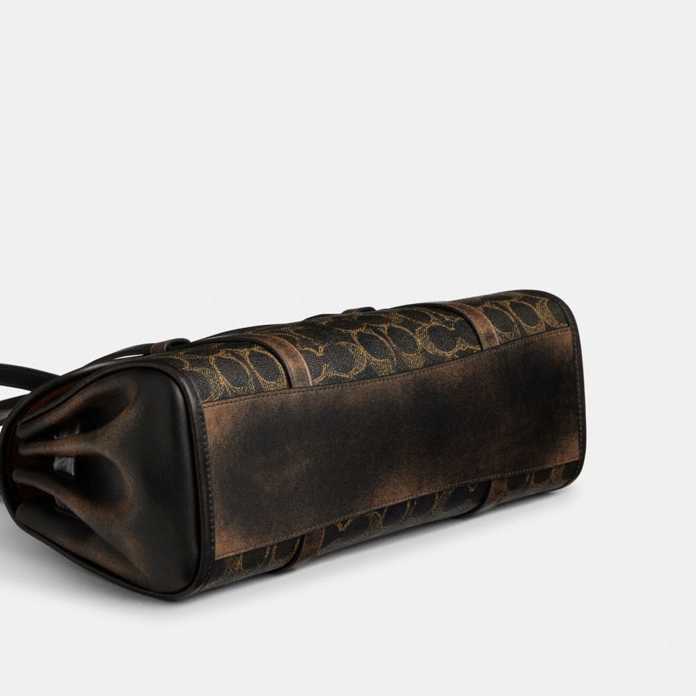 Signature coated canvas and rub-off smooth leather| Inside zip pocket| Pushlock closure, recycled polyester lining| Handles with 9 3/4" drop| 12 1/4" (L) x 6 1/4" (H) x 4 3/4" (W)| Canvas specially treated for a love-worn look|Style No. CDY20