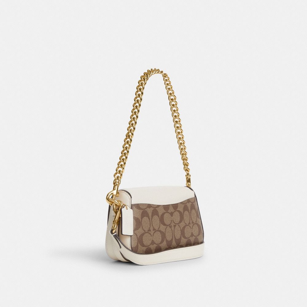 | Signature coated canvas and refined calf leather | Inside zip and multifunction pockets | Turnlock closure, fabric lining | Detachable chain strap with 8 1/2" drop | Outside open pocket | Detachable strap with 22 1/2" drop for shoulder or crossbody wear | 8 3/4" (L) x 5" (H) x 2 1/4" (W)|Style No. CM064|