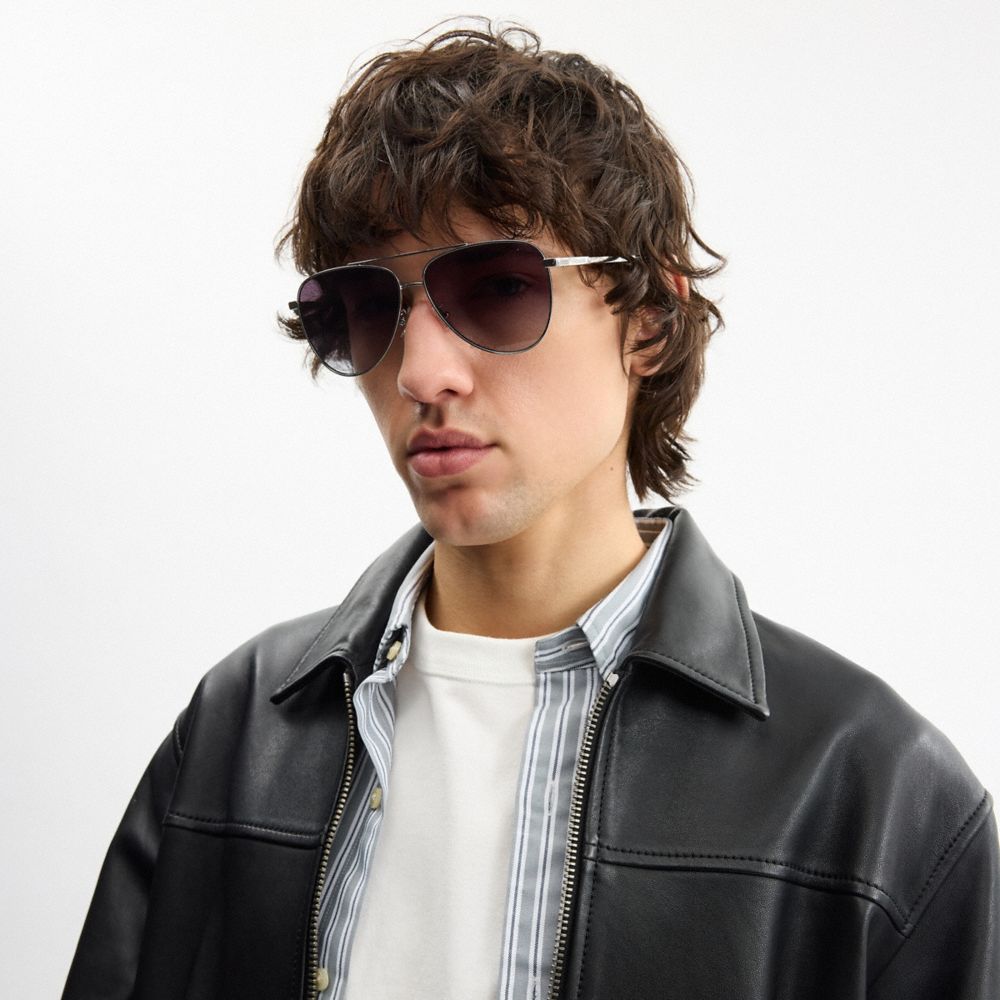 COACH FACTORY OUTLET PRICE CHART - CAY91 - C HARDWARE METAL PILOT SUNGLASSES - SILVER/GREY GRADIENT
