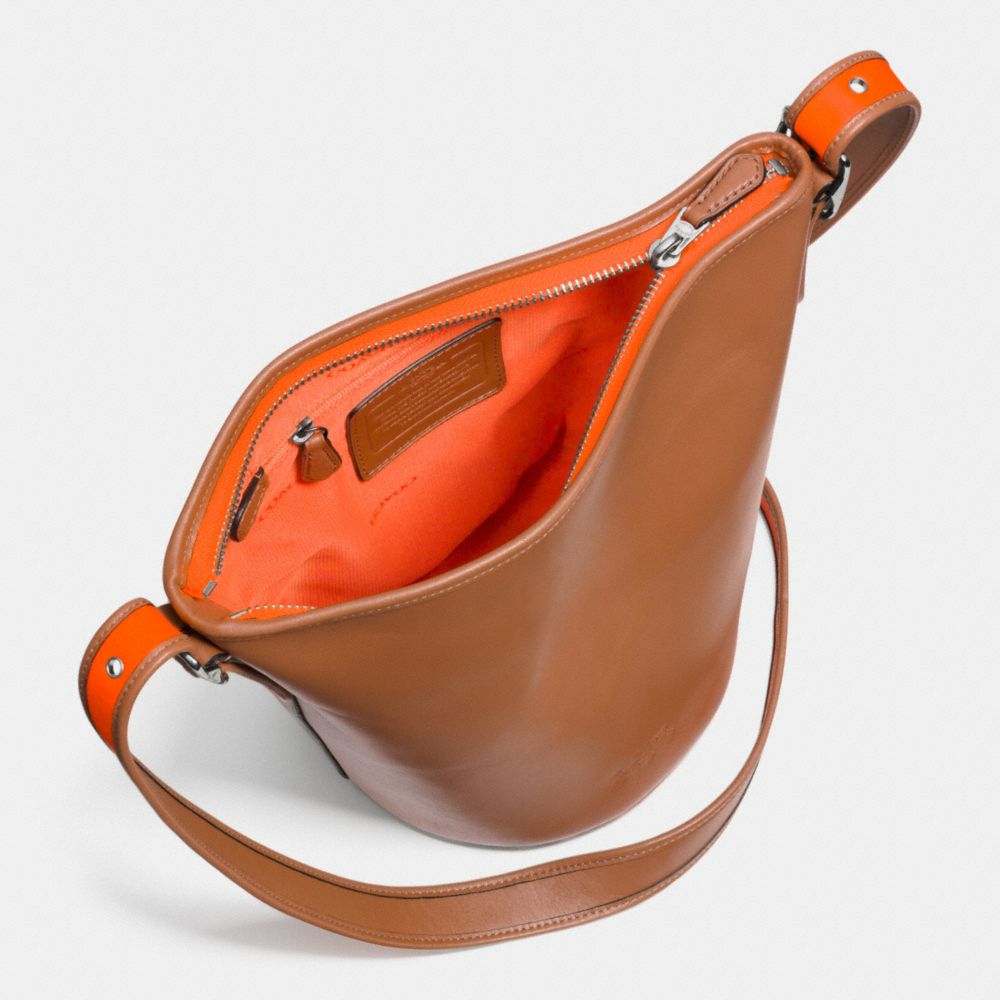 COACH FACTORY OUTLET PRICE CHART - F34411 - C.O.A.C.H. MINI DUFFLE IN CALF LEATHER - SILVER/SADDLE/NEON ORANGE