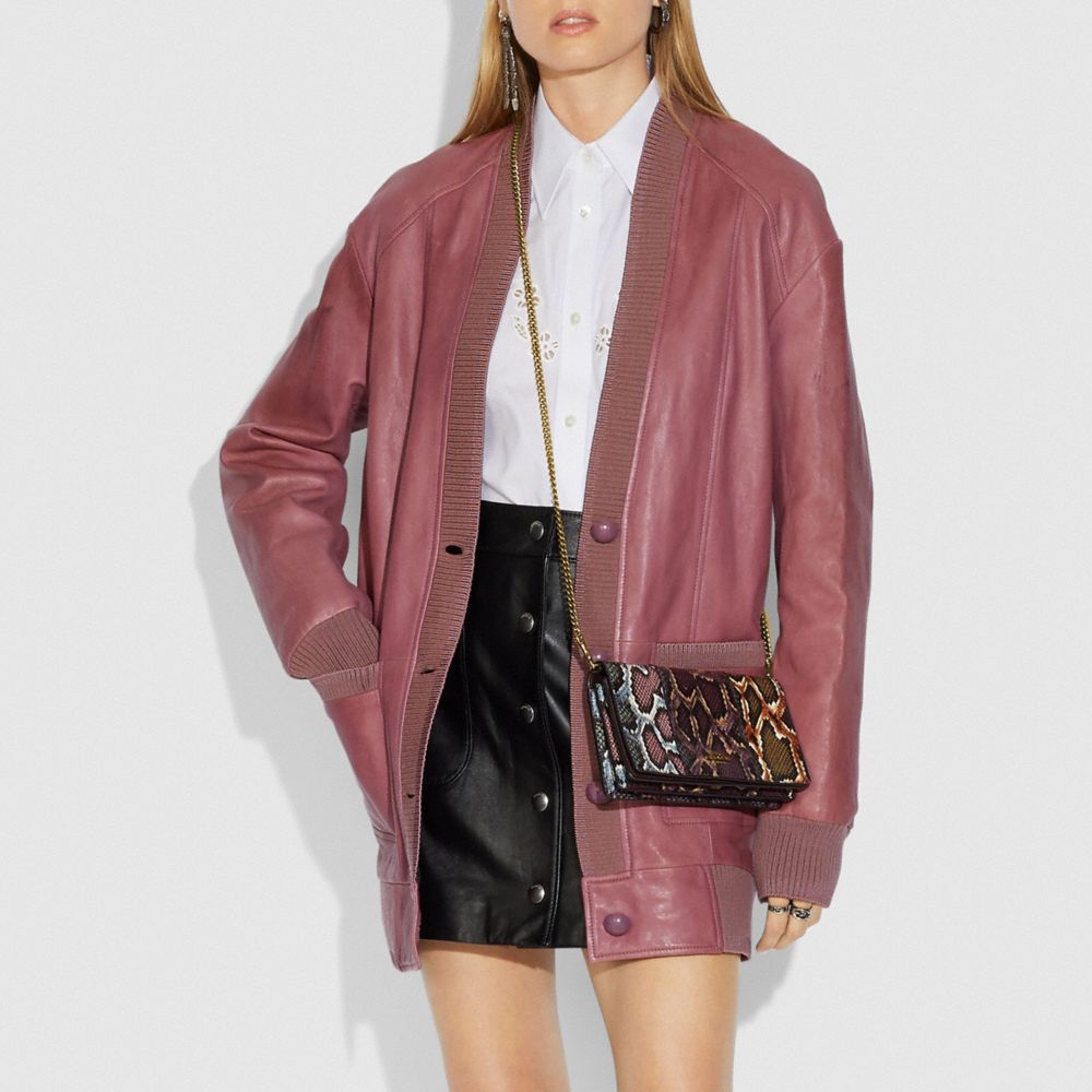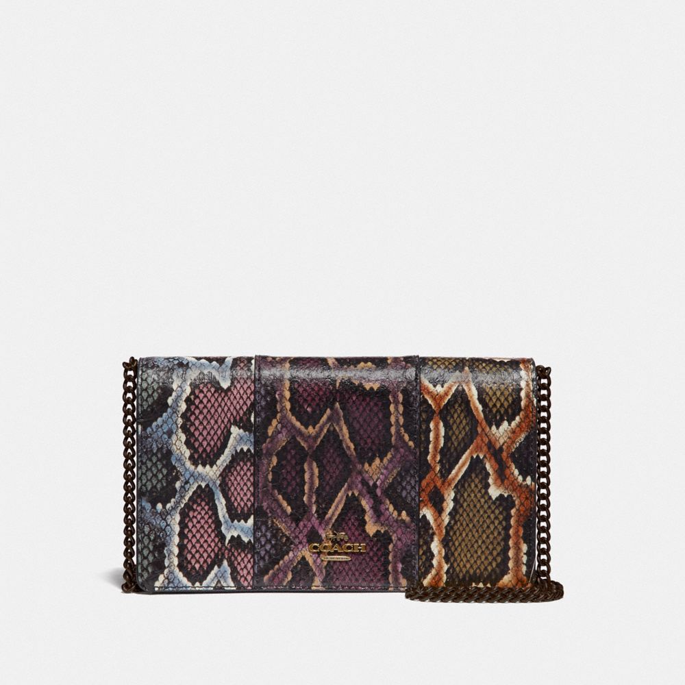 CALLIE FOLDOVER CHAIN CLUTCH IN COLORBLOCK SNAKESKIN (COACH 78060)