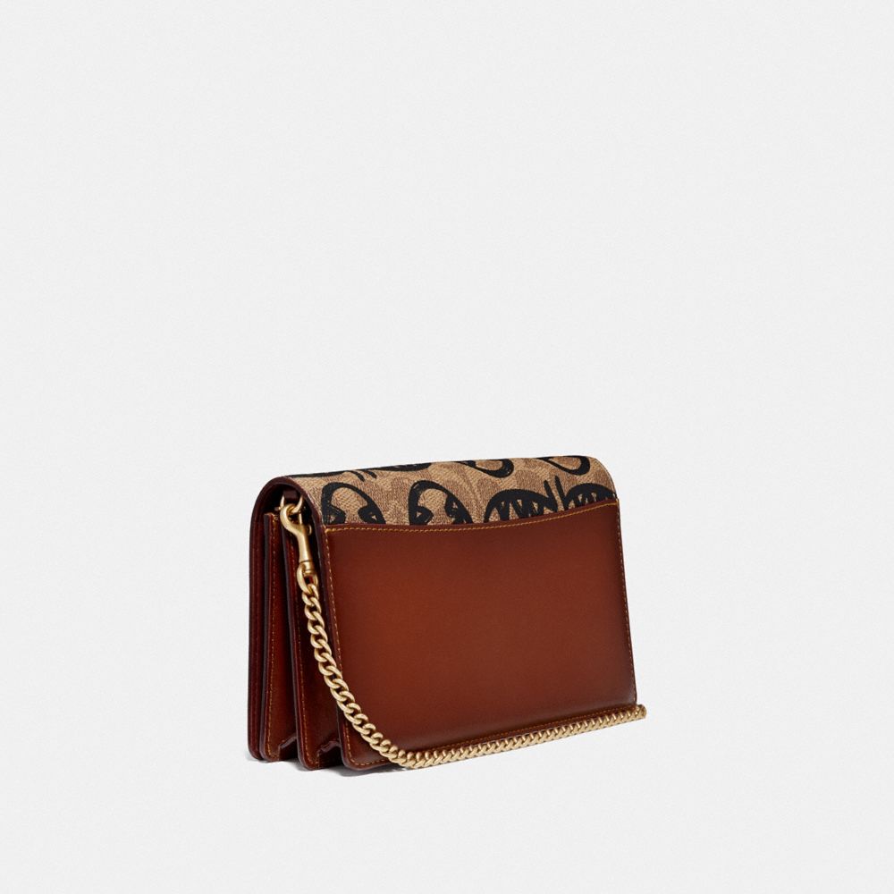 COACH FACTORY OUTLET PRICE CHART - 73825 - CALLIE FOLDOVER CHAIN CLUTCH IN SIGNATURE CANVAS WITH REXY BY GUANG YU - B4/TAN RUST