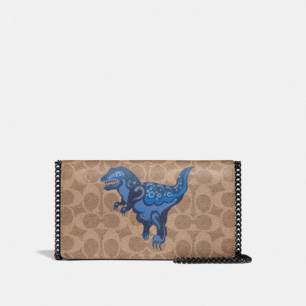 CALLIE FOLDOVER CHAIN CLUTCH IN SIGNATURE CANVAS WITH REXY BY ZHU JINGYI (COACH F73826)