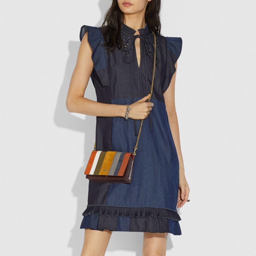 CALLIE FOLDOVER CHAIN CLUTCH WITH PATCHWORK STRIPES (COACH 76168)