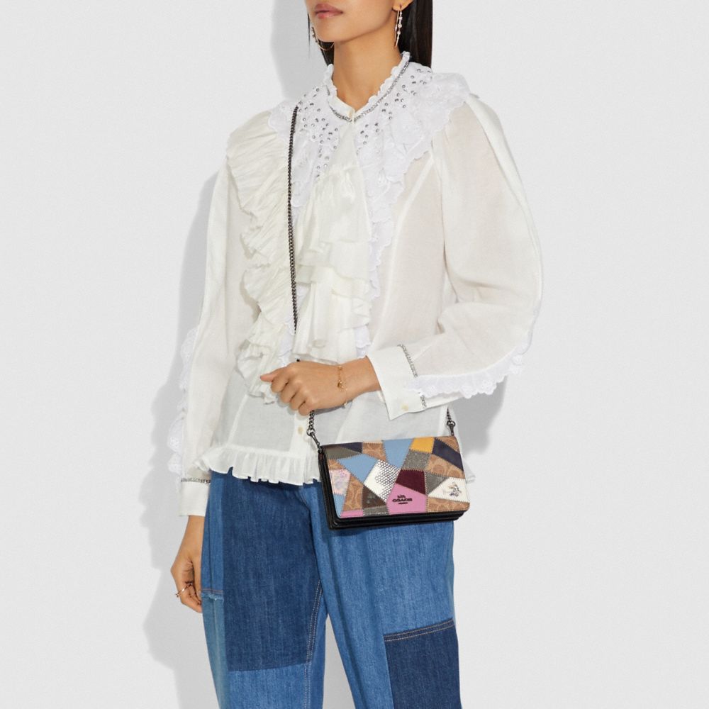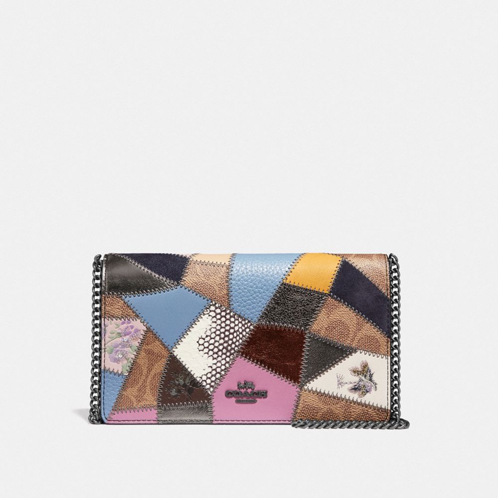 CALLIE FOLDOVER CHAIN CLUTCH WITH SIGNATURE PATCHWORK (COACH 69189)