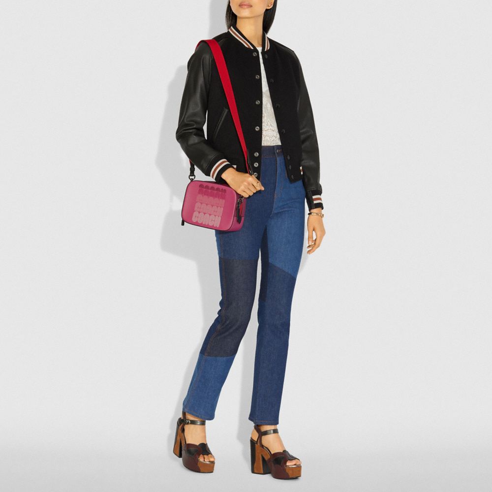 COACH FACTORY OUTLET PRICE CHART - 69411 - CAMERA BAG WITH COACH PRINT - BRIGHT CHERRY MULTI/GUNMETAL