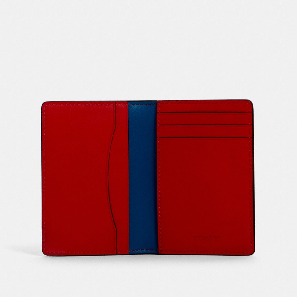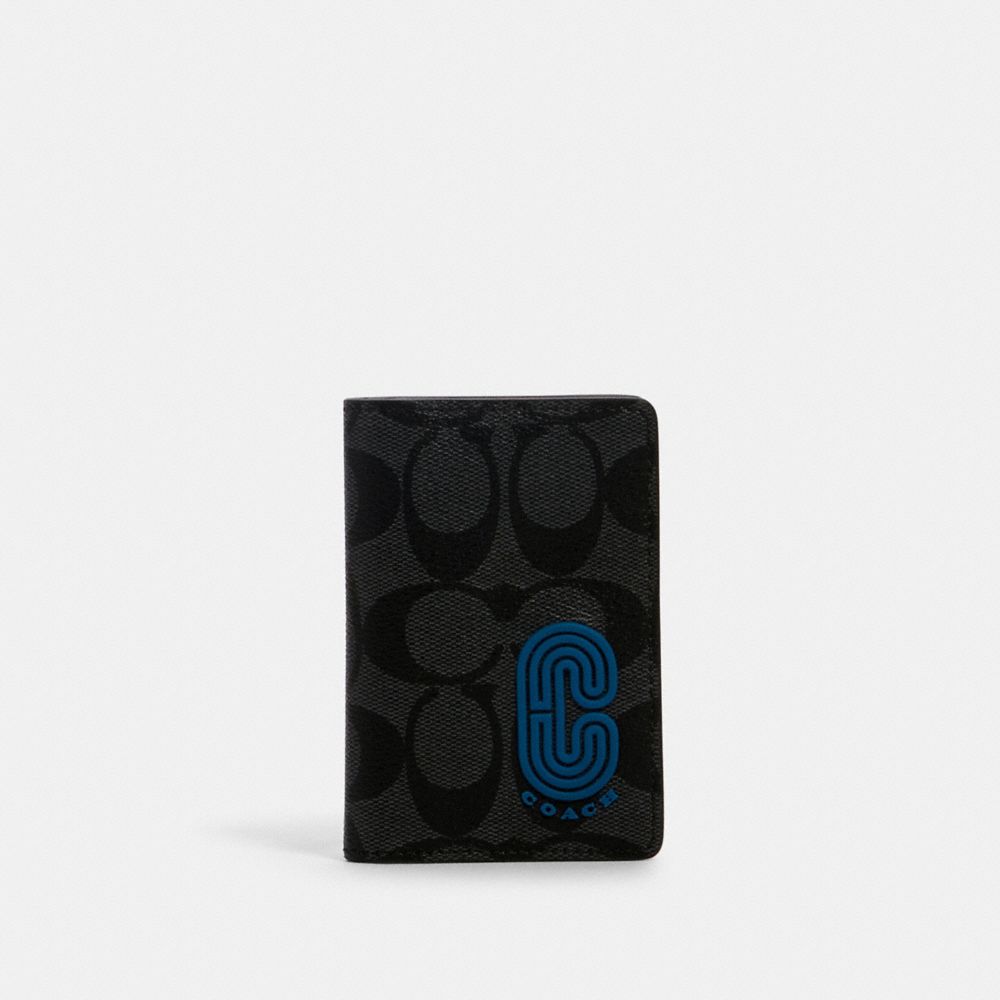 COACH FACTORY OUTLET PRICE CHART - 2026 - CARD WALLET IN COLORBLOCK SIGNATURE CANVAS WITH COACH PATCH - QB/CHARCOAL/ BLUE JAY MULTI