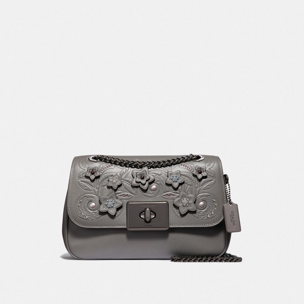 COACH FACTORY OUTLET PRICE CHART - F38085 - CASSIDY CROSSBODY WITH FLORAL TOOLING - HEATHER GREY MULTI/BLACK ANTIQUE NICKEL