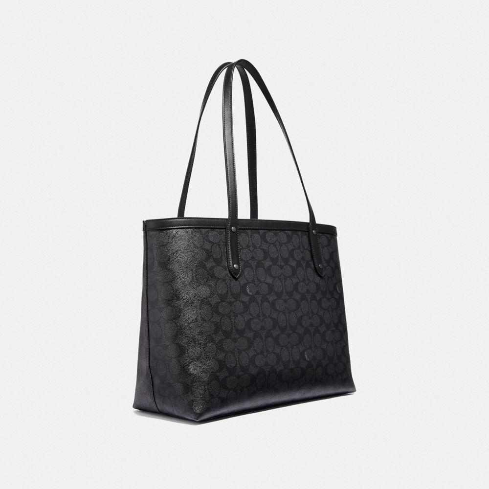 COACH FACTORY OUTLET PRICE CHART - 69453 - CENTRAL TOTE IN SIGNATURE CANVAS WITH STAR APPLIQUE AND SNAKESKIN DETAIL - CHARCOAL/MULTI/PEWTER