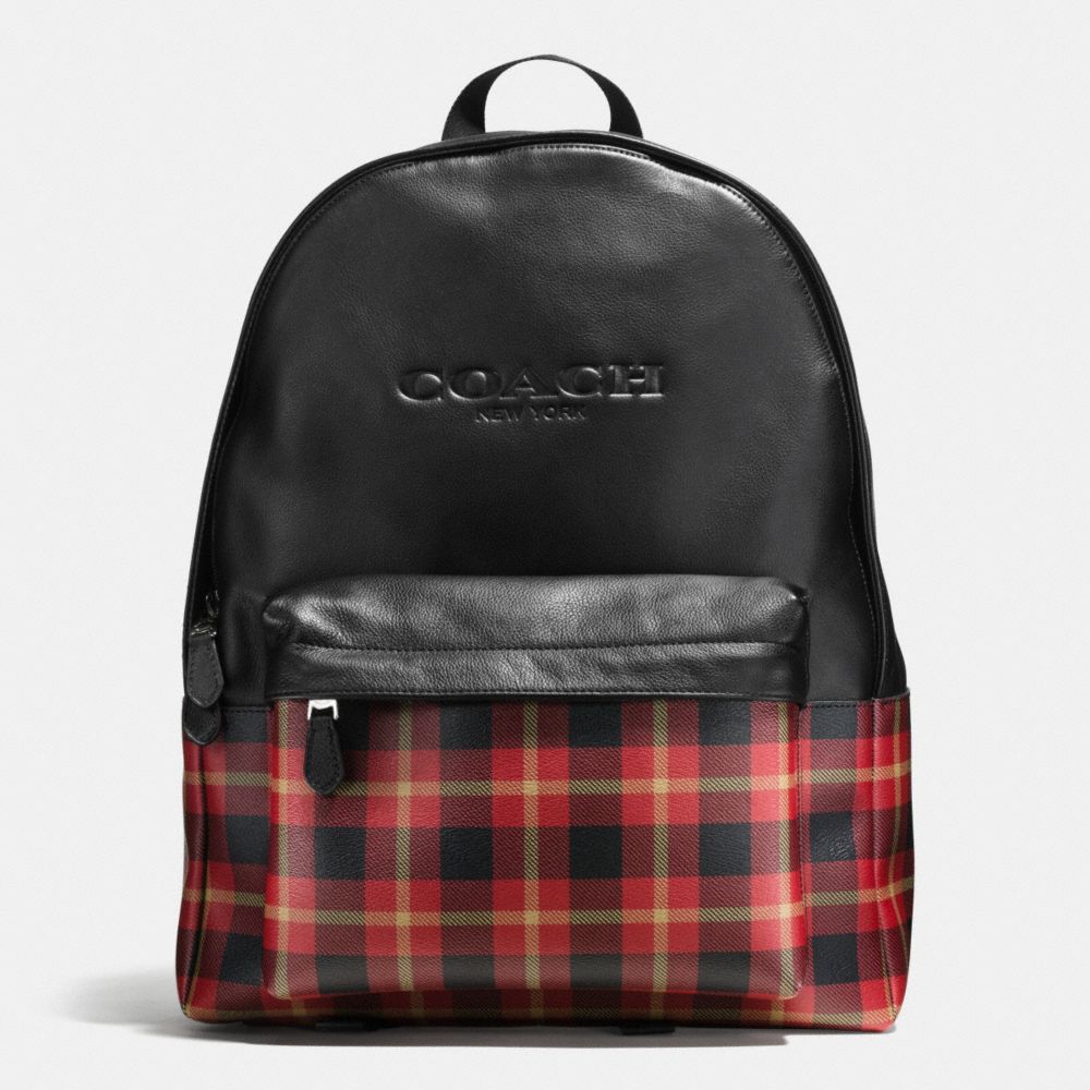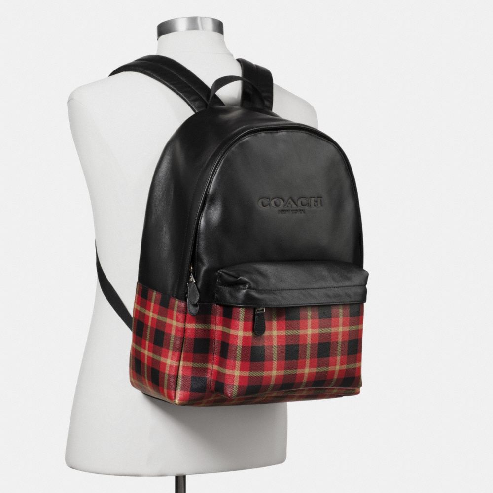 COACH FACTORY OUTLET PRICE CHART - F55394 - CHARLES BACKPACK IN PRINT COATED CANVAS - BLACK/RED PLAID BLACK
