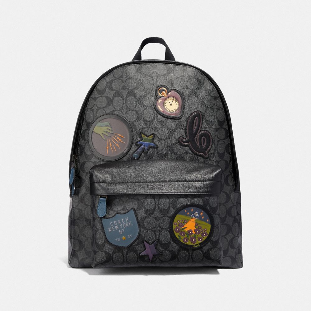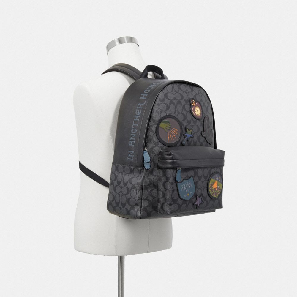 COACH FACTORY OUTLET PRICE CHART - F39720 - CHARLES BACKPACK IN SIGNATURE CANVAS WITH WIZARD OF OZ PATCHES - CHARCOAL/BLACK/BLACK ANTIQUE NICKEL