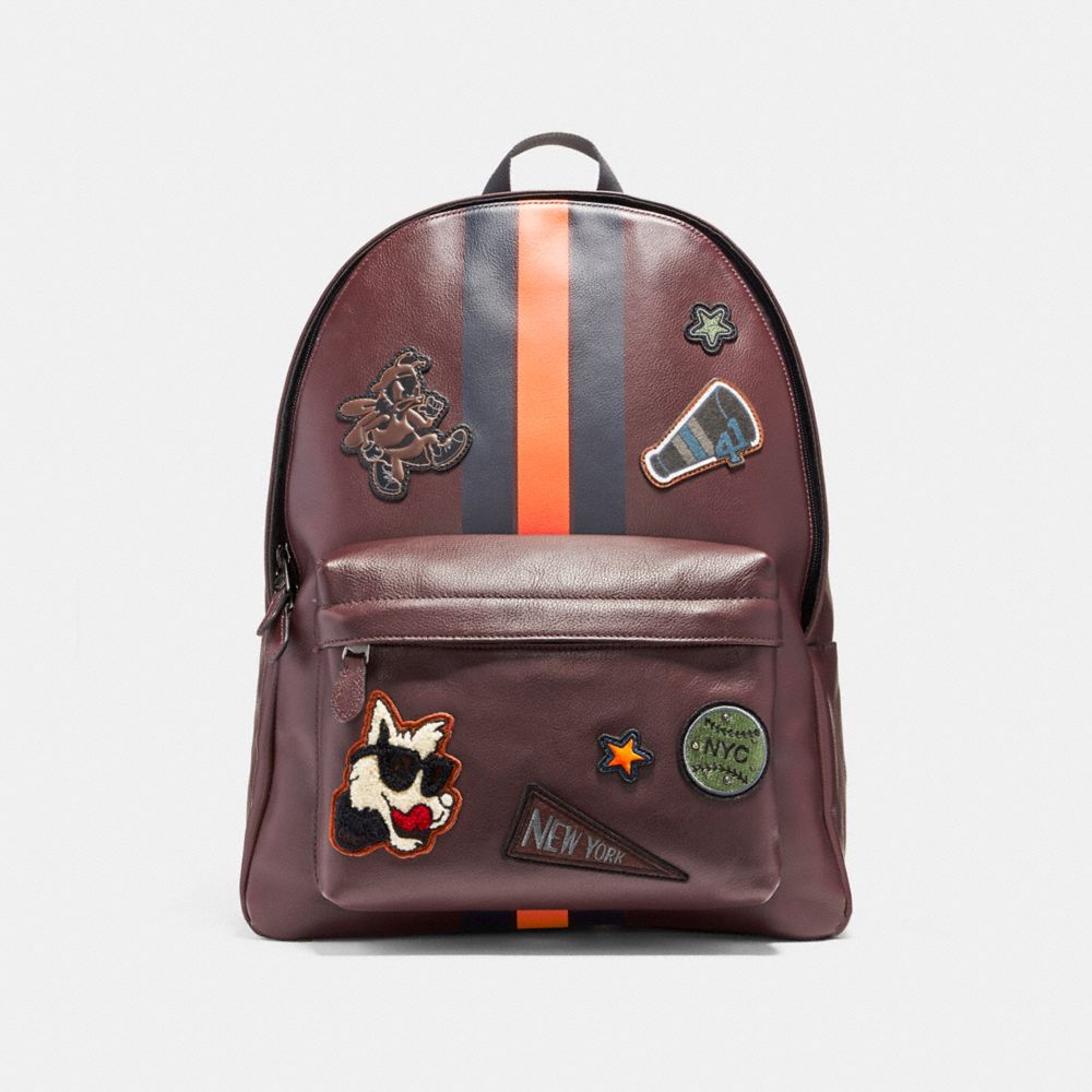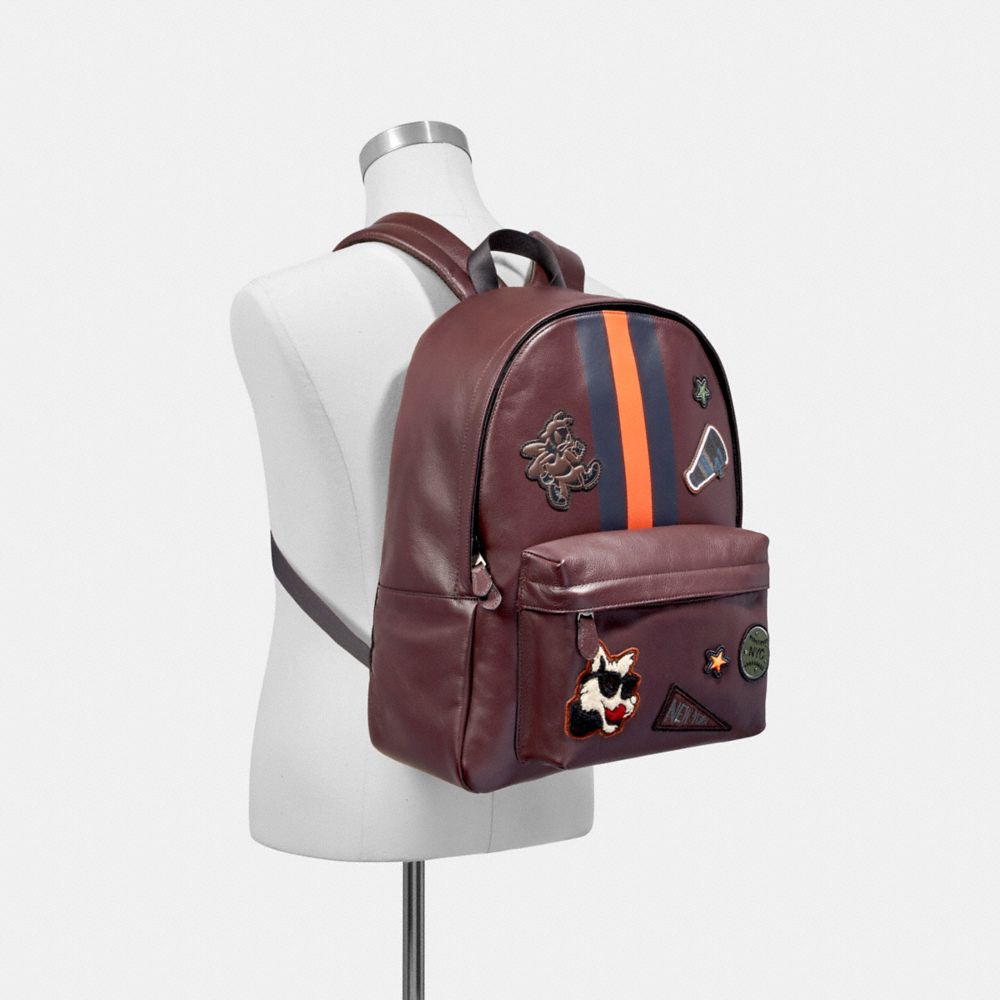 CHARLES BACKPACK IN SMOOTH CALF LEATHER WITH VARSITY PATCHES (COACH F12125)