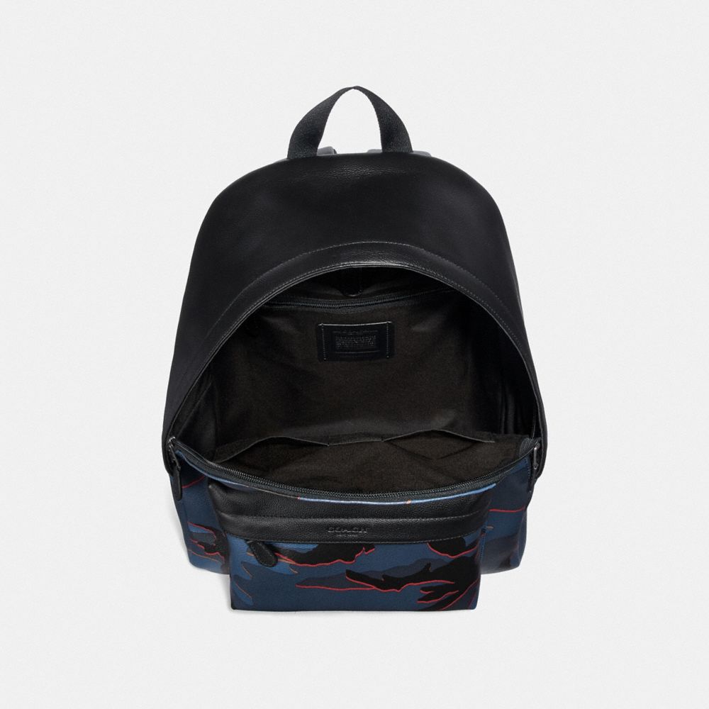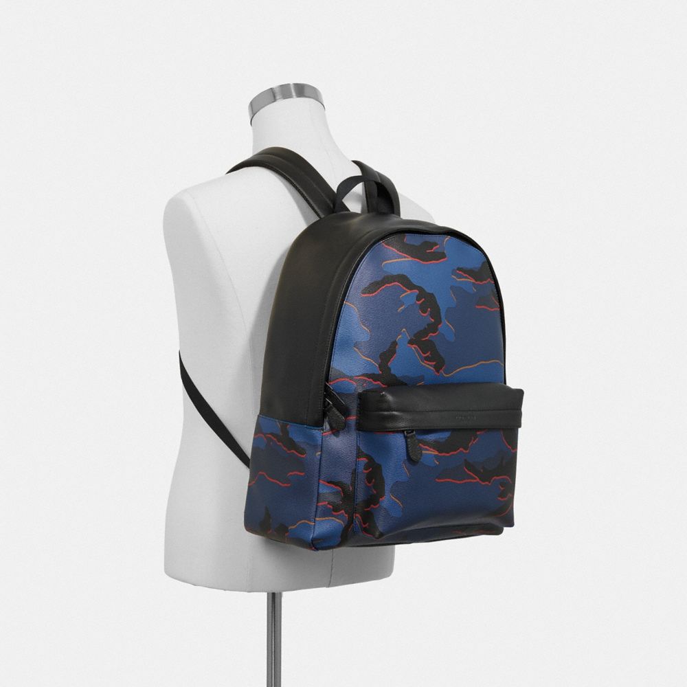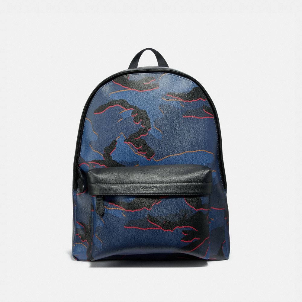 COACH F31557 CHARLES BACKPACK WITH CAMO PRINT BLUE MULTI/BLACK ANTIQUE NICKEL