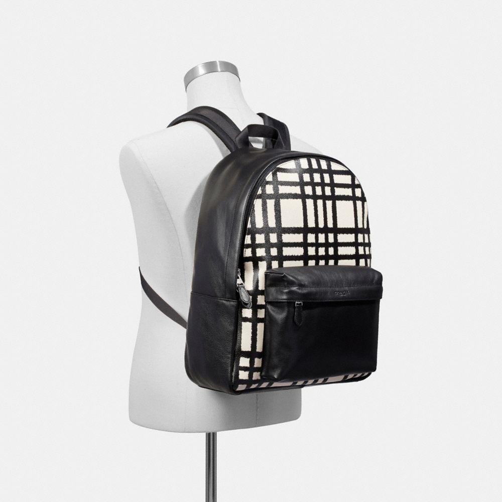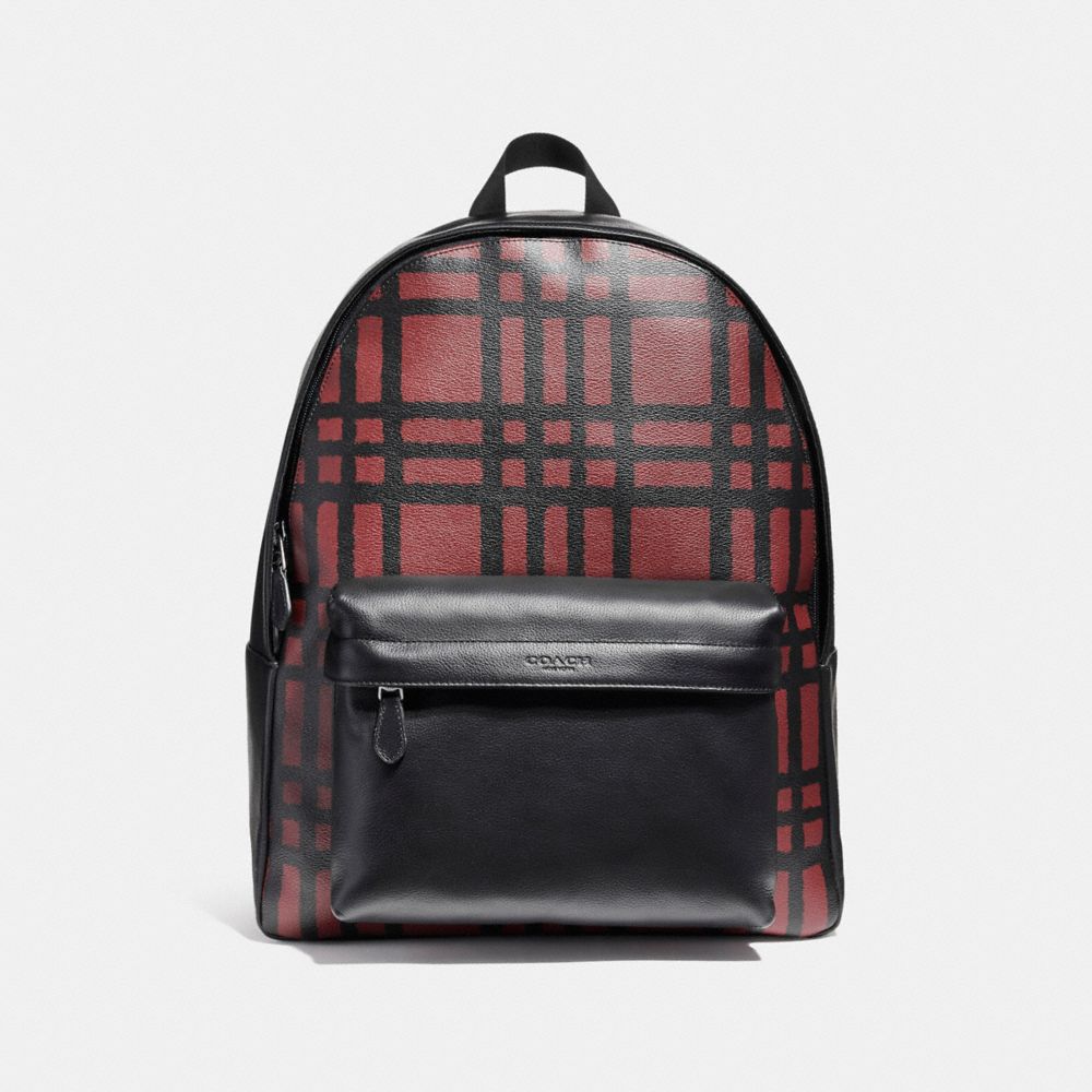 COACH FACTORY OUTLET PRICE CHART - F11164 - CHARLES BACKPACK WITH WILD PLAID PRINT - BLACK ANTIQUE NICKEL/CRIMSON/BLACK PLAID
