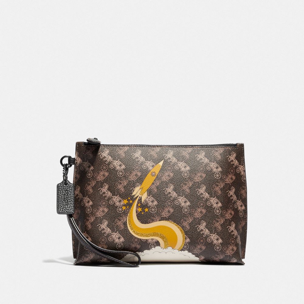 CHARLIE POUCH WITH HORSE AND CARRIAGE PRINT AND ROCKET (COACH 86105)