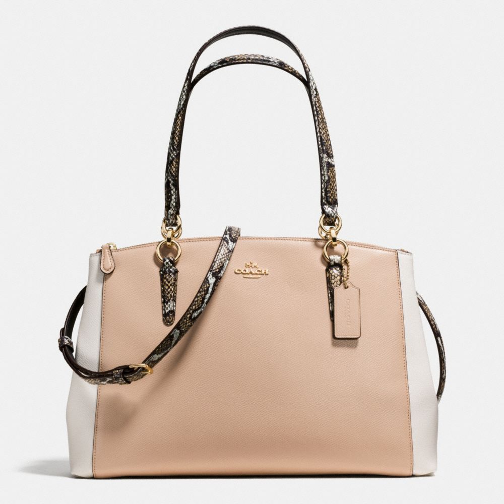 COACH FACTORY OUTLET PRICE CHART - F38249 - CHRISTIE CARRYALL IN CROSSGRAIN LEATHER WITH EXOTIC-EMBOSSED TRIM - IMITATION GOLD/BEECHWOOD MULTI
