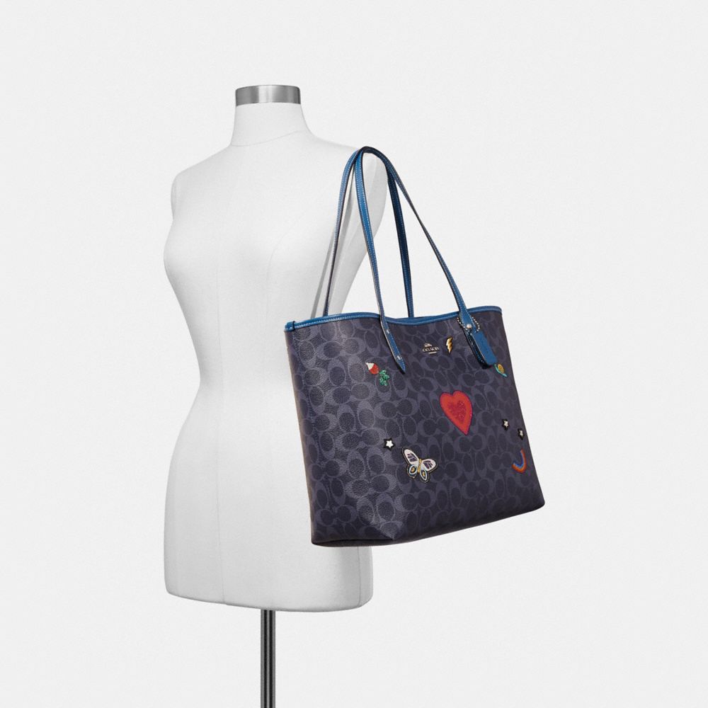 CITY TOTE IN SIGNATURE CANVAS WITH SOUVENIR EMBROIDERY (COACH F24592)