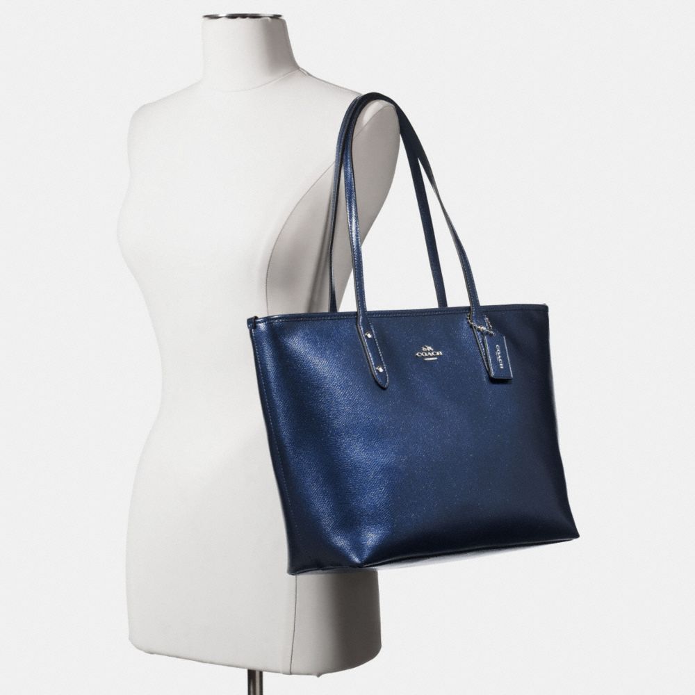 CITY ZIP TOTE IN METALLIC CROSSGRAIN LEATHER (COACH F56129)