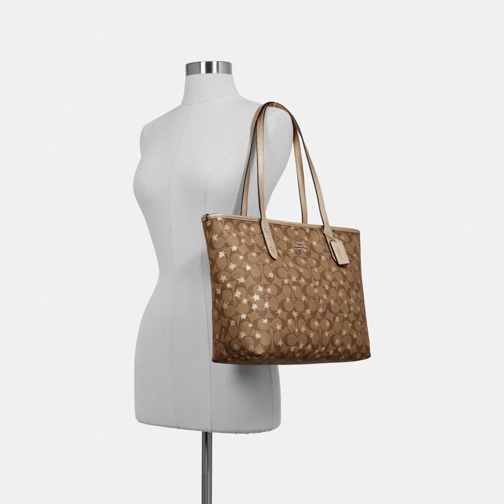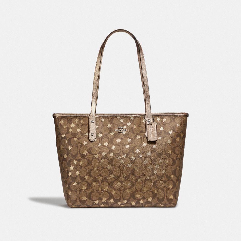 CITY ZIP TOTE IN SIGNATURE CANVAS WITH POP STAR PRINT (COACH F39698)