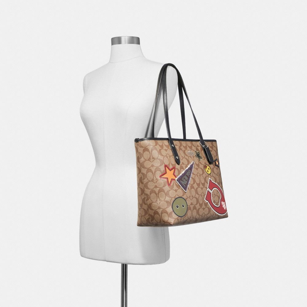 CITY ZIP TOTE IN SIGNATURE COATED CANVAS WITH VARSITY PATCHES (COACH F20910)