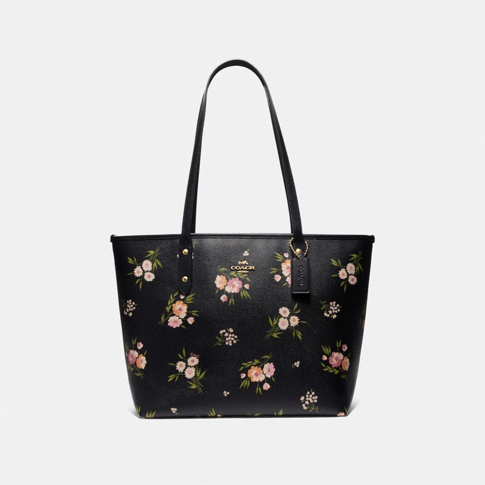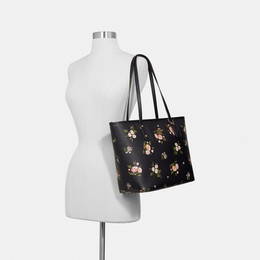 COACH FACTORY OUTLET PRICE CHART - F73052 - CITY ZIP TOTE WITH TOSSED DAISY PRINT - BLACK PINK/IMITATION GOLD
