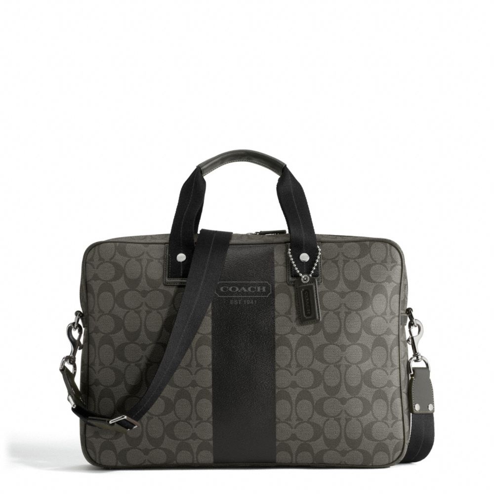COACH FACTORY OUTLET PRICE CHART - F70592 - COACH HERITAGE STRIPE ZIP TOP BRIEF - SILVER/GREY/CHARCOAL