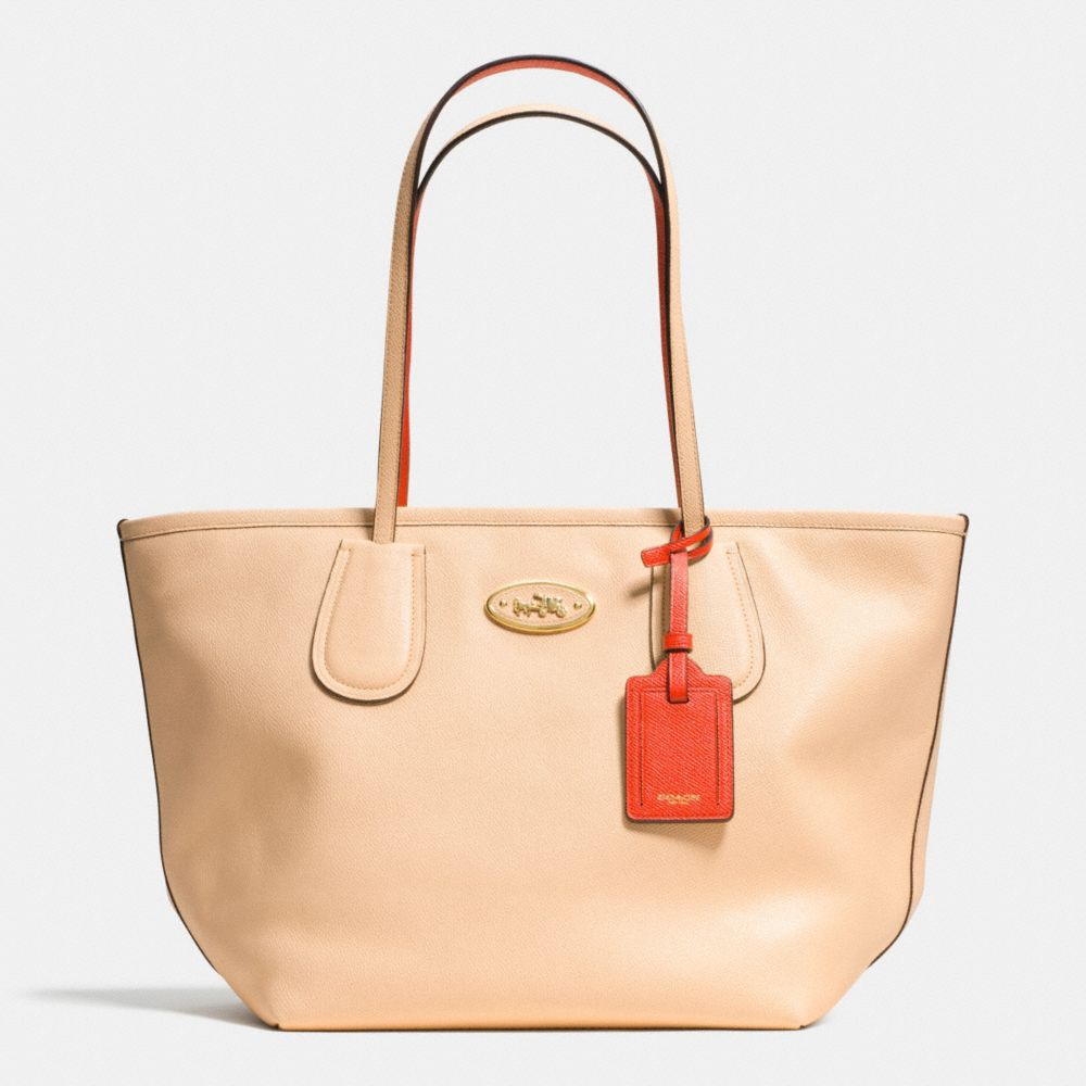 COACH TAXI ZIP TOP TOTE IN TWO TONE COLORBLOCK LEATHER (COACH F34355)