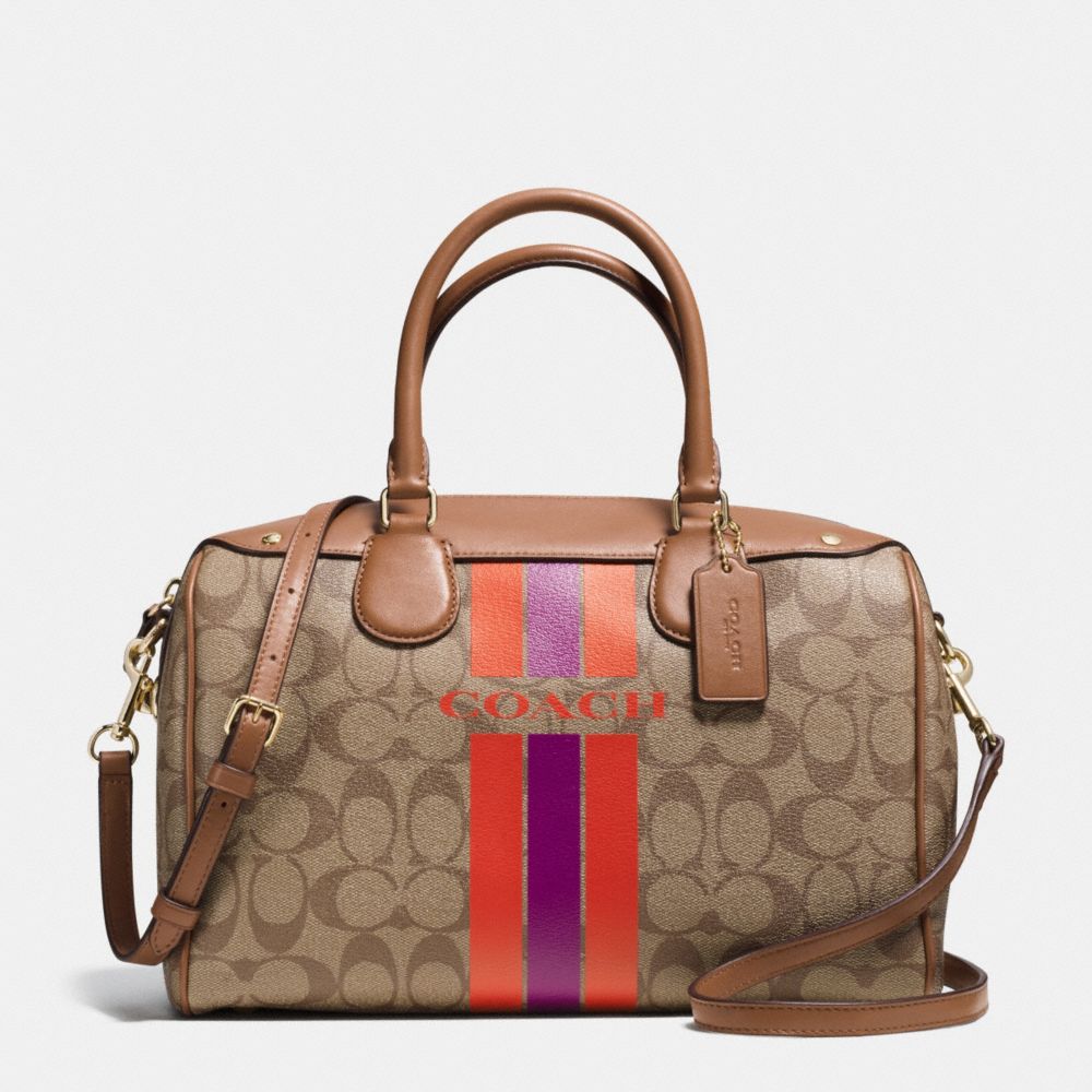 COACH FACTORY OUTLET PRICE CHART - F38269 - COACH VARSITY STRIPE BENNETT SATCHEL IN SIGNATURE - IMITATION GOLD/KHAKI/WATERMELON