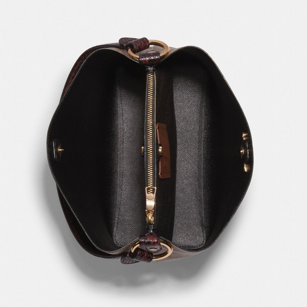 Signature coated canvas, refined pebble leather and snake-embossed leather| Center zip compartment| Snap closure| Handle with 8" drop| Detachable strap with 20 1/2" drop for shoulder or crossbody wear| 10 1/4" (L) x 10" (H) x 5" (W)| Coach celebrates and honors renowned New York City artist Jean-Michel Basquiat with a special collection featuring elements from his revolutionary works of art.| © ESTATE OF JEAN-MICHEL BASQUIAT. LICENSED BY ARTESTAR, NEW YORK