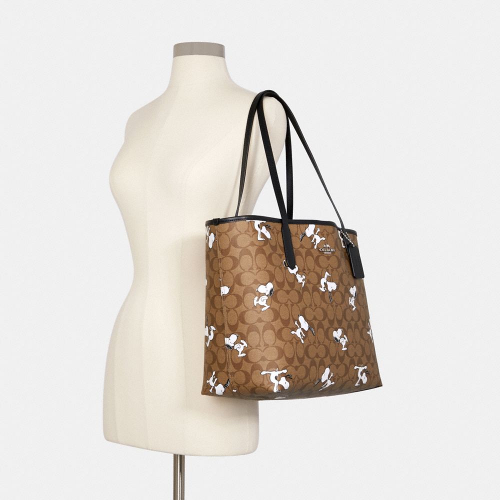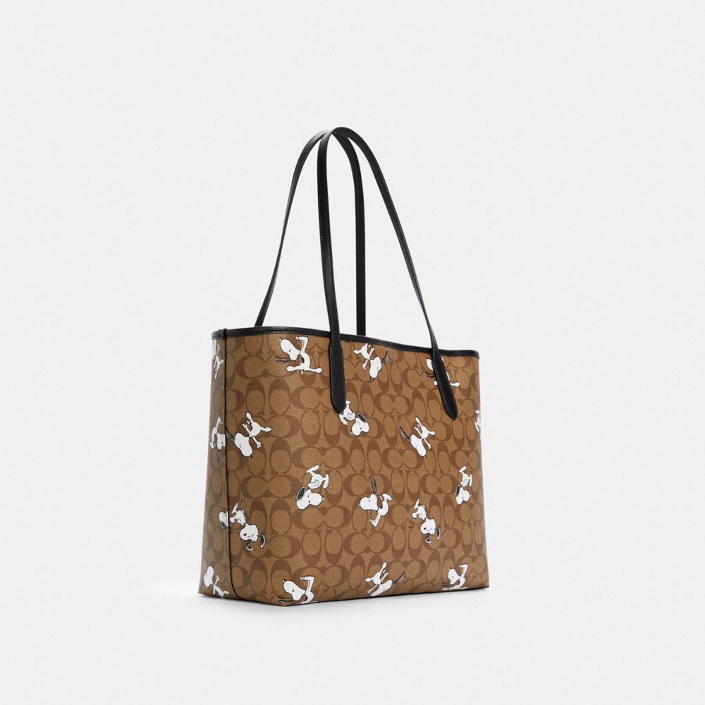 COACH X PEANUTS CITY TOTE IN SIGNATURE CANVAS WITH SNOOPY PRINT (COACH 6160)