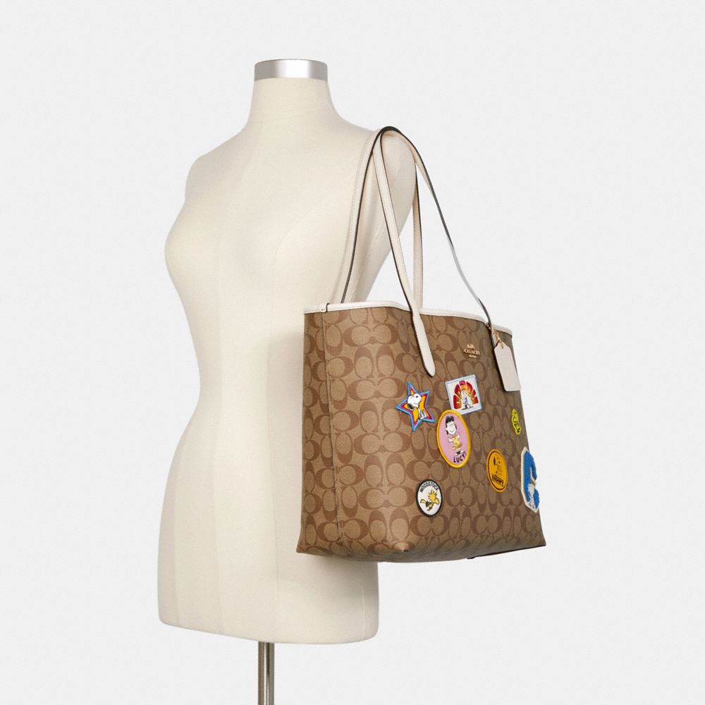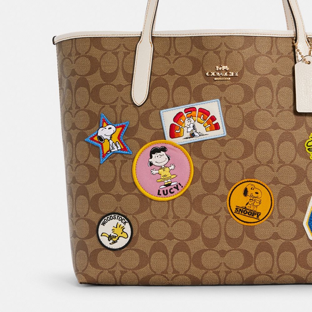 COACH X PEANUTS CITY TOTE IN SIGNATURE CANVAS WITH VARSITY PATCHES (COACH C4292)