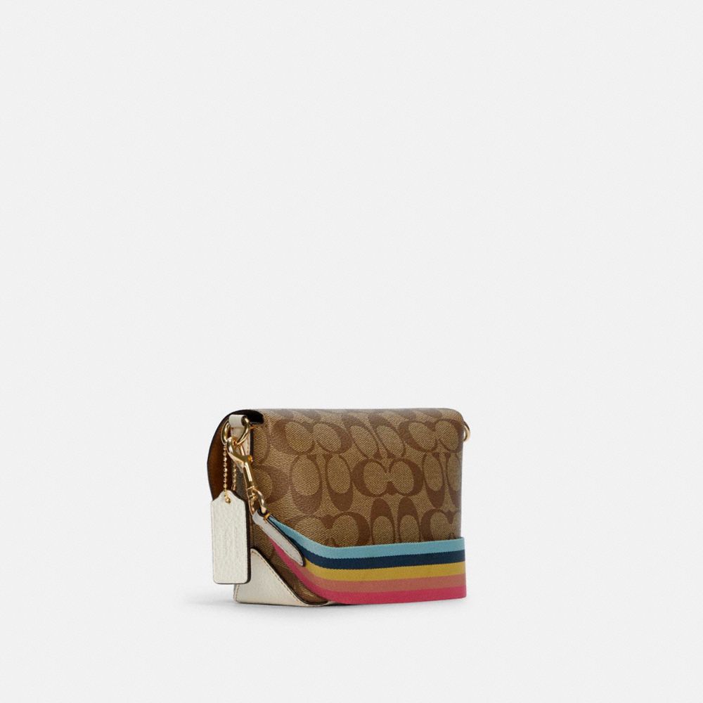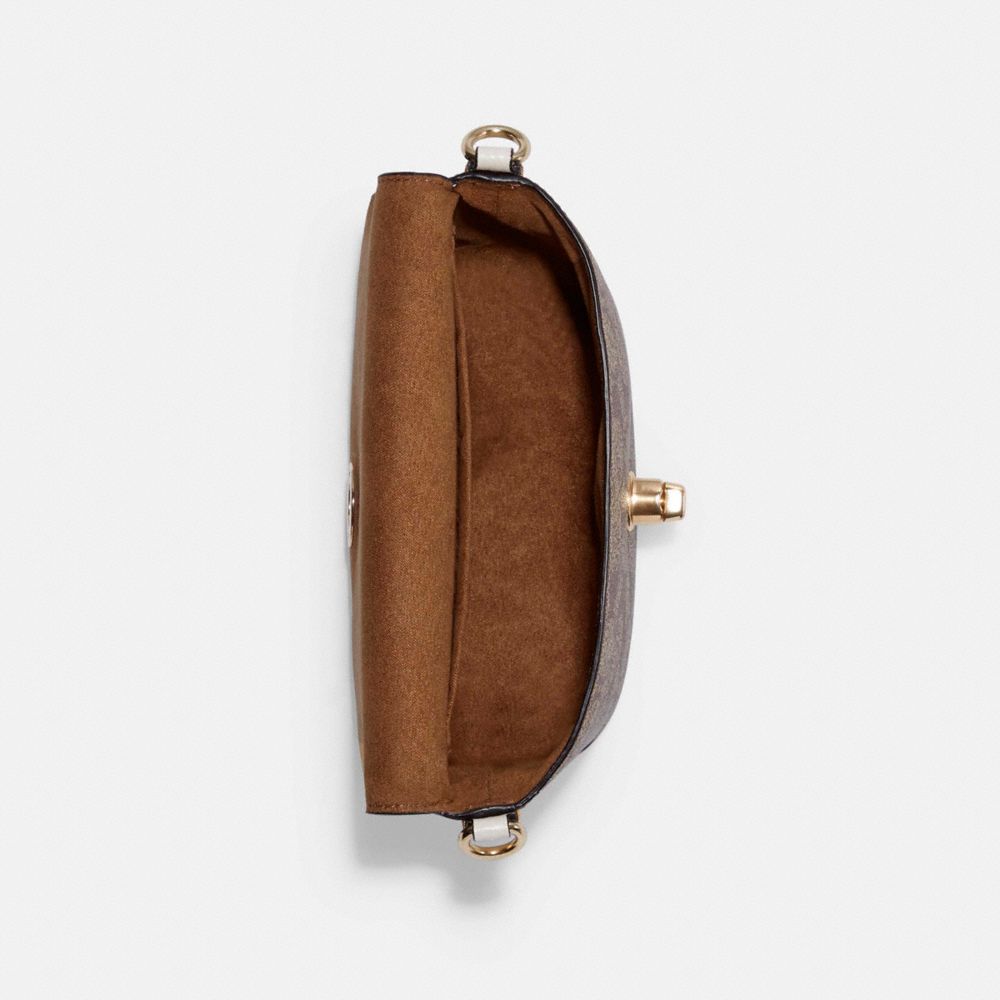 Signature coated canvas and refined pebble leather| Inside multifunction pocket| Turnlock closure, fabric lining| Detachable strap with 22 1/2" drop for shoulder or crossbody wear| 8" (L) x 5 1/4" (H) x 3 1/4" (W)| COACH X PEANUTS| Â©ï¸ 2021 PEANUTS WORLDWIDE