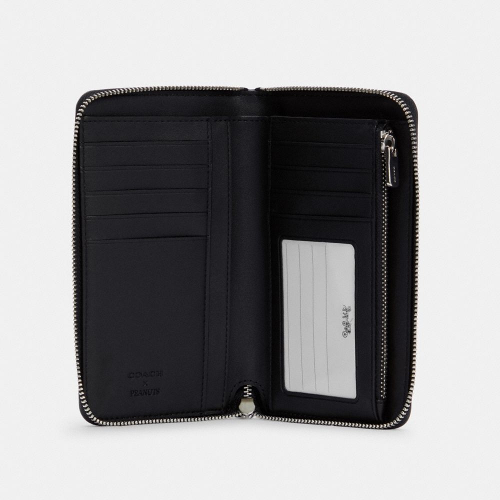 Signature coated canvas and smooth leather| Nine credit card slots| Bill compartments| ID window| Zip coin pocket| Zip-around closure| 6 1/2" (L) x 3 3/4" (H) x 3/4" (W)| COACH X PEANUTS| Â©ï¸ 2021 PEANUTS WORLDWIDE