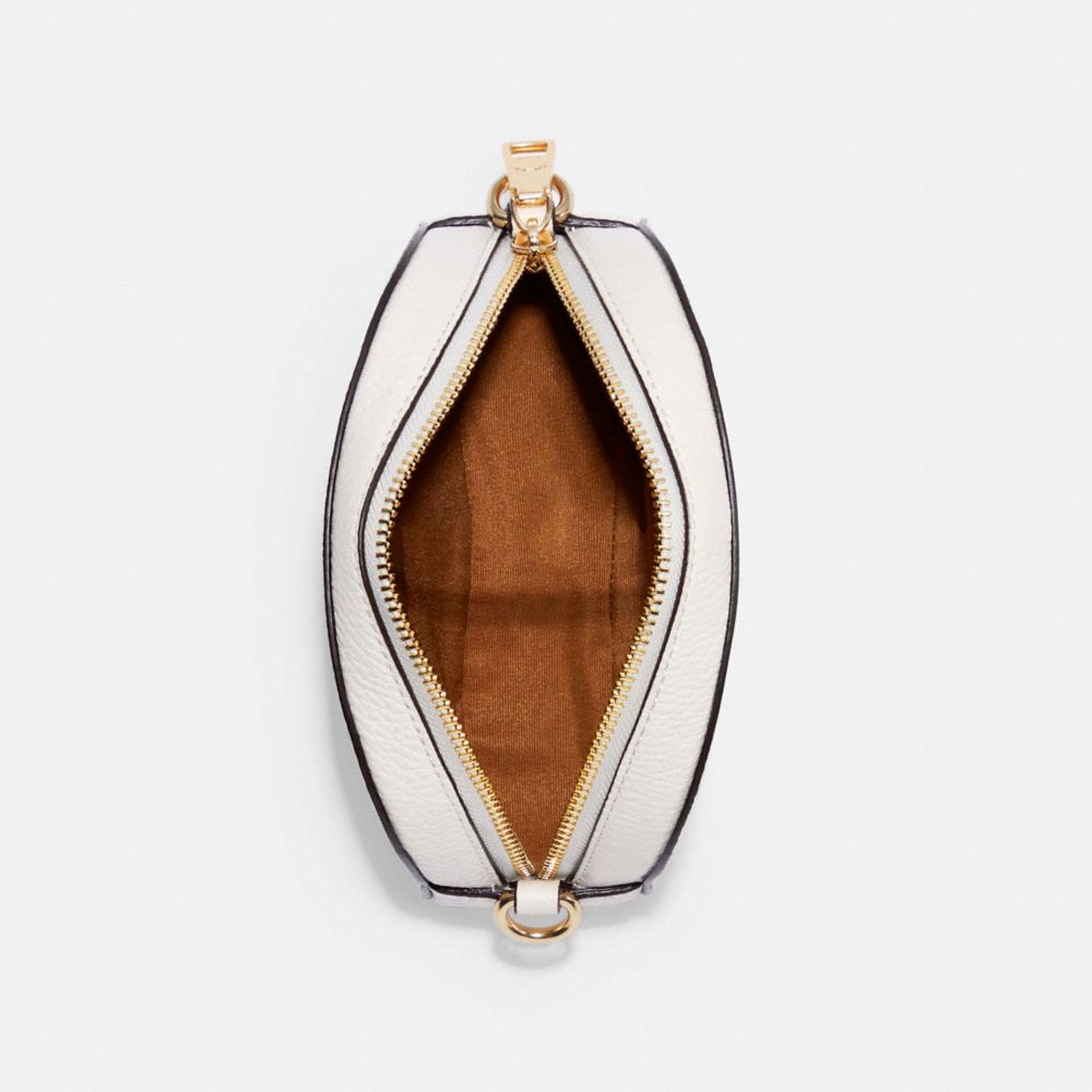 Refined pebble leather| Two credit card slots| Zip closure, fabric lining| Outside slip pocket| Detachable strap with 23" drop for shoulder or crossbody wear| 6 1/2" (L) x 4 3/4" (H) x 2" (W)| COACH X PEANUTS| Â©ï¸ 2021 PEANUTS WORLDWIDE