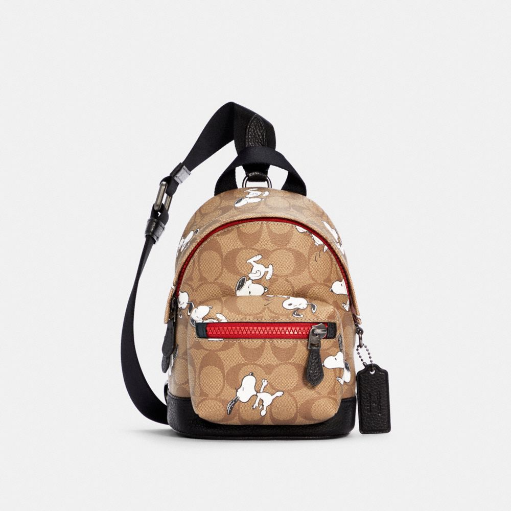 COACH X PEANUTS SMALL WEST BACKPACK CROSSBODY IN SIGNATURE CANVAS WITH SNOOPY PRINT (COACH 5840)