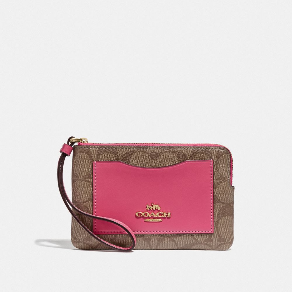 COACH FACTORY OUTLET PRICE CHART - F73142 - CORNER ZIP WRISTLET IN COLORBLOCK SIGNATURE CANVAS - KHAKI/GOLD