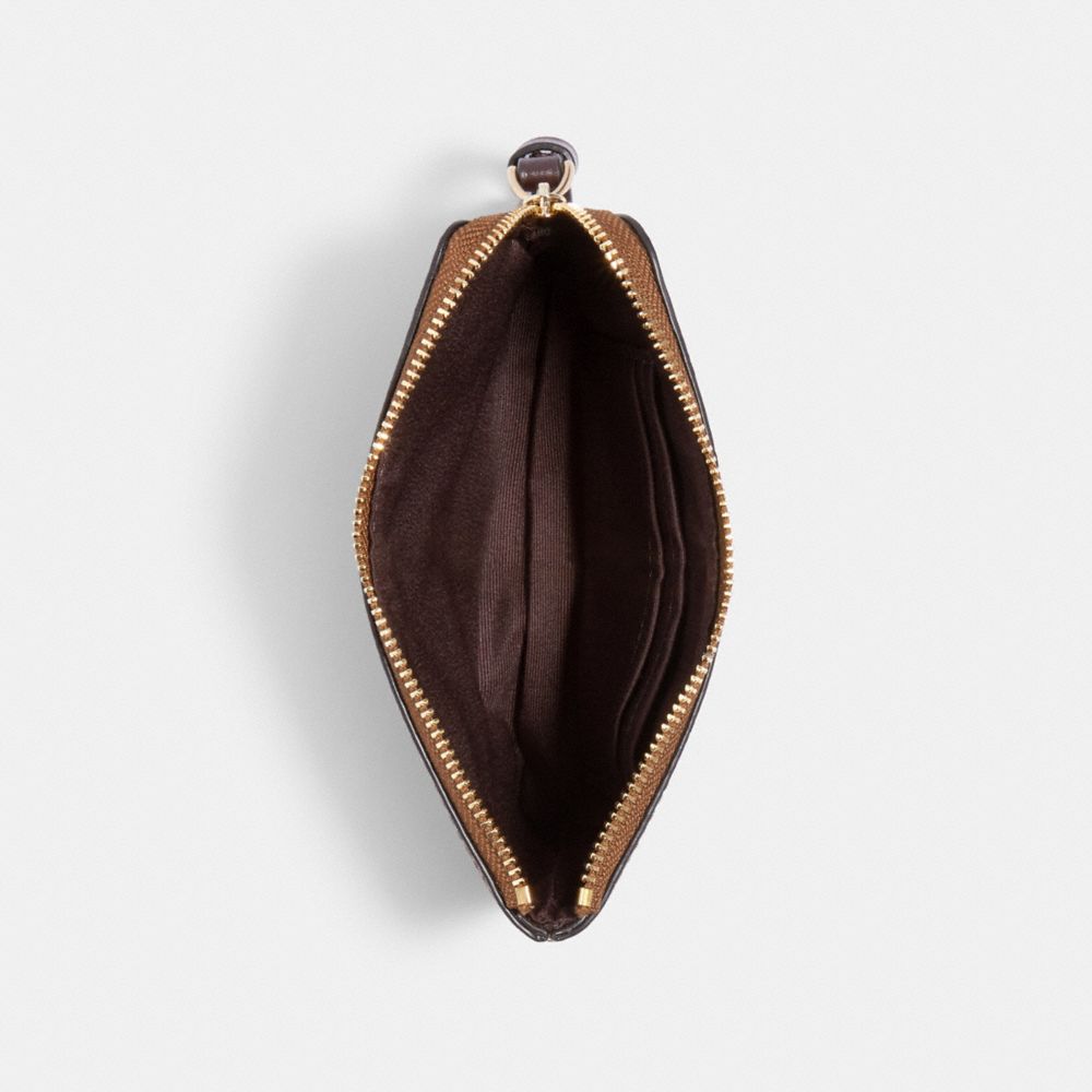 Signature coated canvas with smooth leather details| Two credit card slots| Zip-top closure, fabric lining| Wrist strap attached| 6 1/4" (L) x 4" (H) x 1/2" (W)| Fits an iPhone or Android