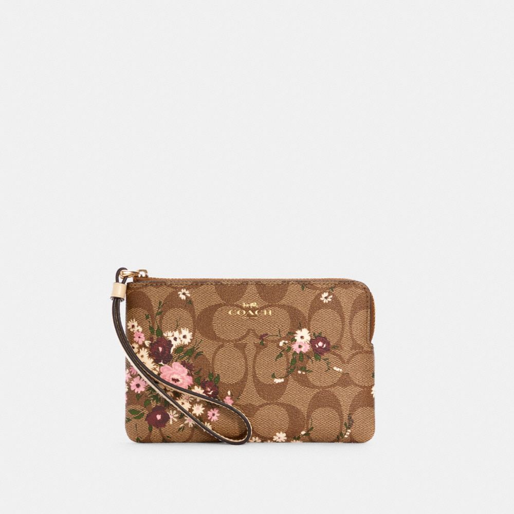 CORNER ZIP WRISTLET IN SIGNATURE CANVAS WITH EVERGREEN FLORAL PRINT (COACH 6860)
