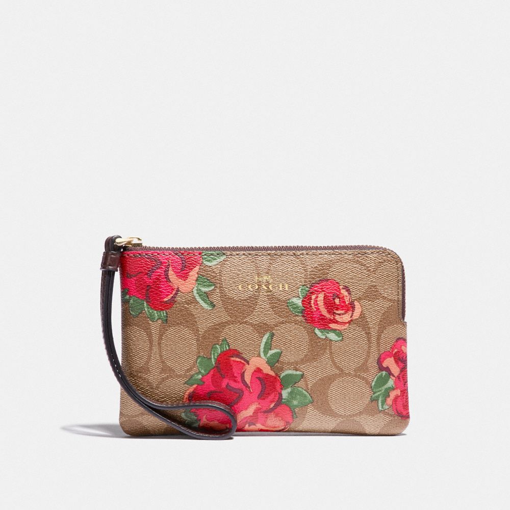 COACH FACTORY OUTLET PRICE CHART - F39150 - CORNER ZIP WRISTLET IN SIGNATURE CANVAS WITH JUMBO FLORAL PRINT - KHAKI/OXBLOOD MULTI/LIGHT GOLD