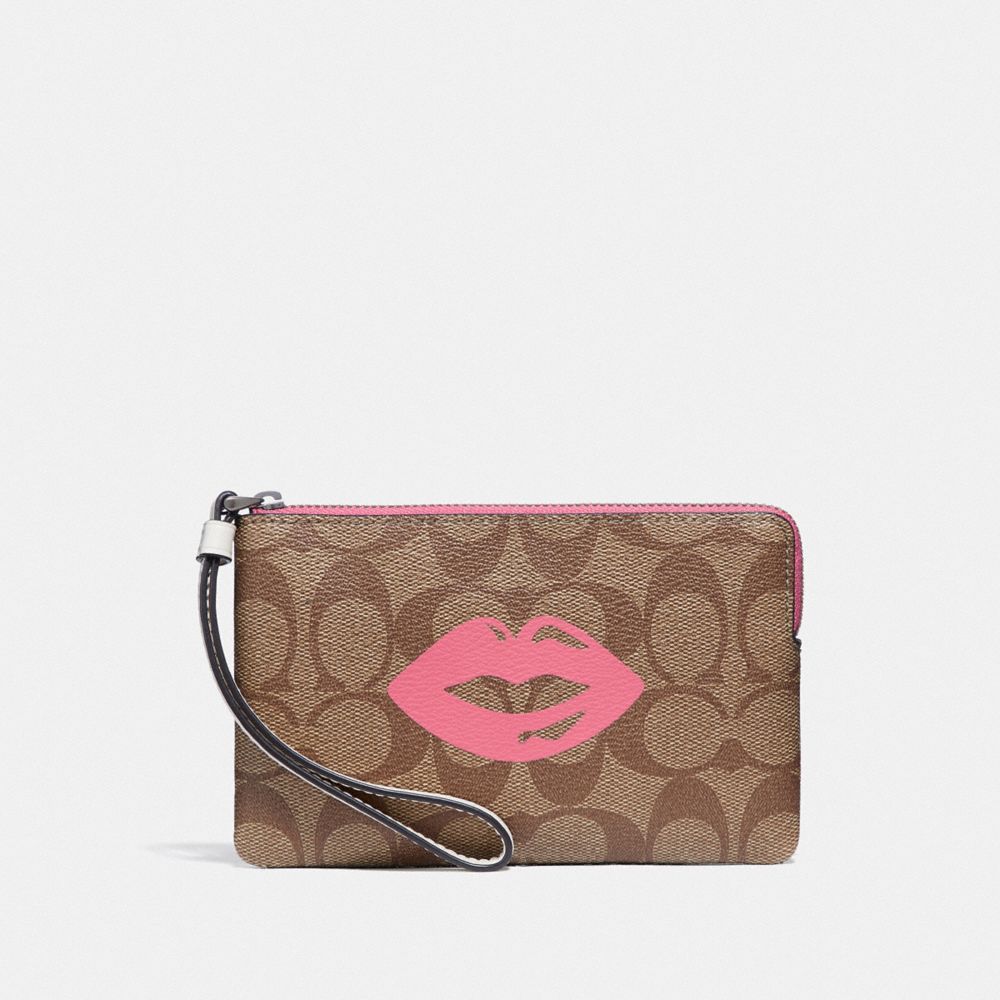 CORNER ZIP WRISTLET IN SIGNATURE CANVAS WITH LIPS MOTIF (COACH F78671)