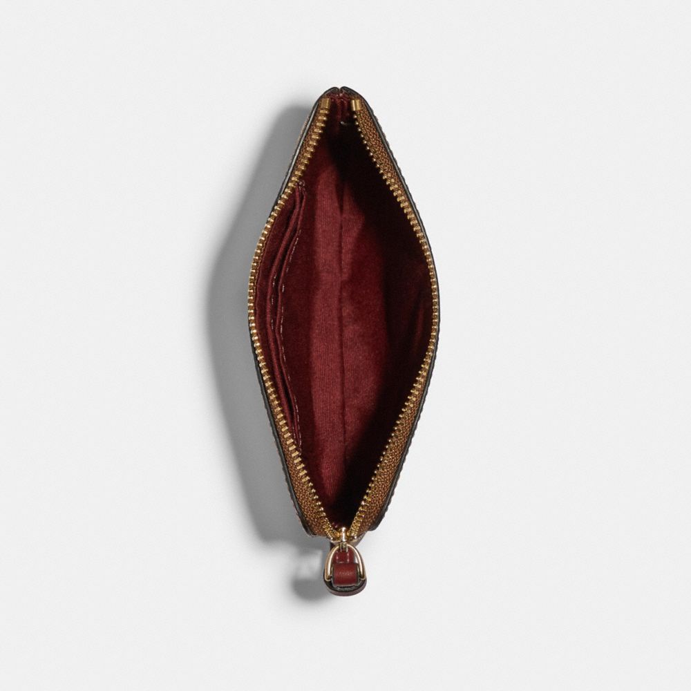 Signature coated canvas with smooth leather details| Two credit card slots| Zip-top closure, fabric lining| Wrist strap attached| 6 1/4" (L) x 4" (H) x 1/2" (W)| Fits an iPhone or Android