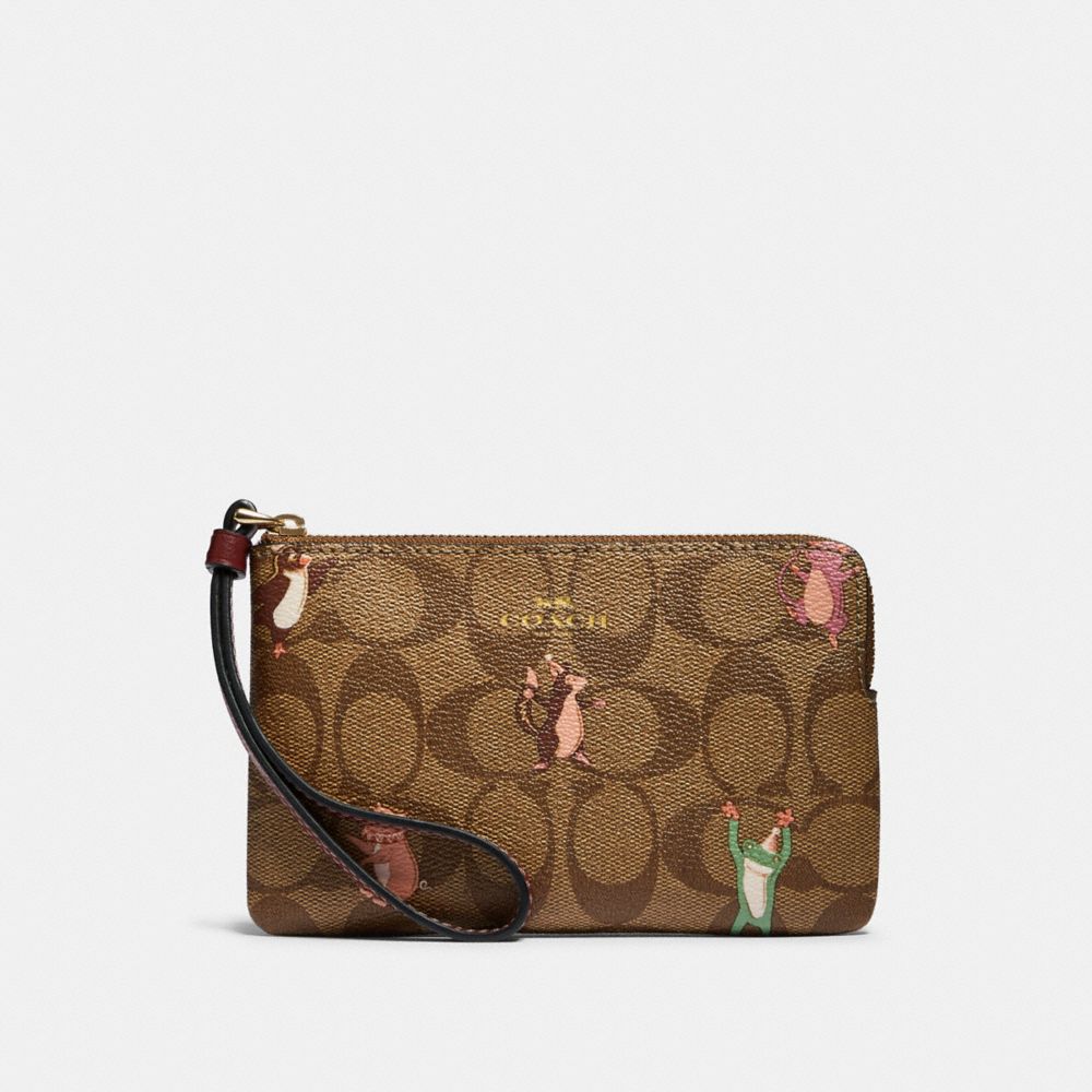 CORNER ZIP WRISTLET IN SIGNATURE CANVAS WITH PARTY ANIMALS PRINT (COACH F87877)